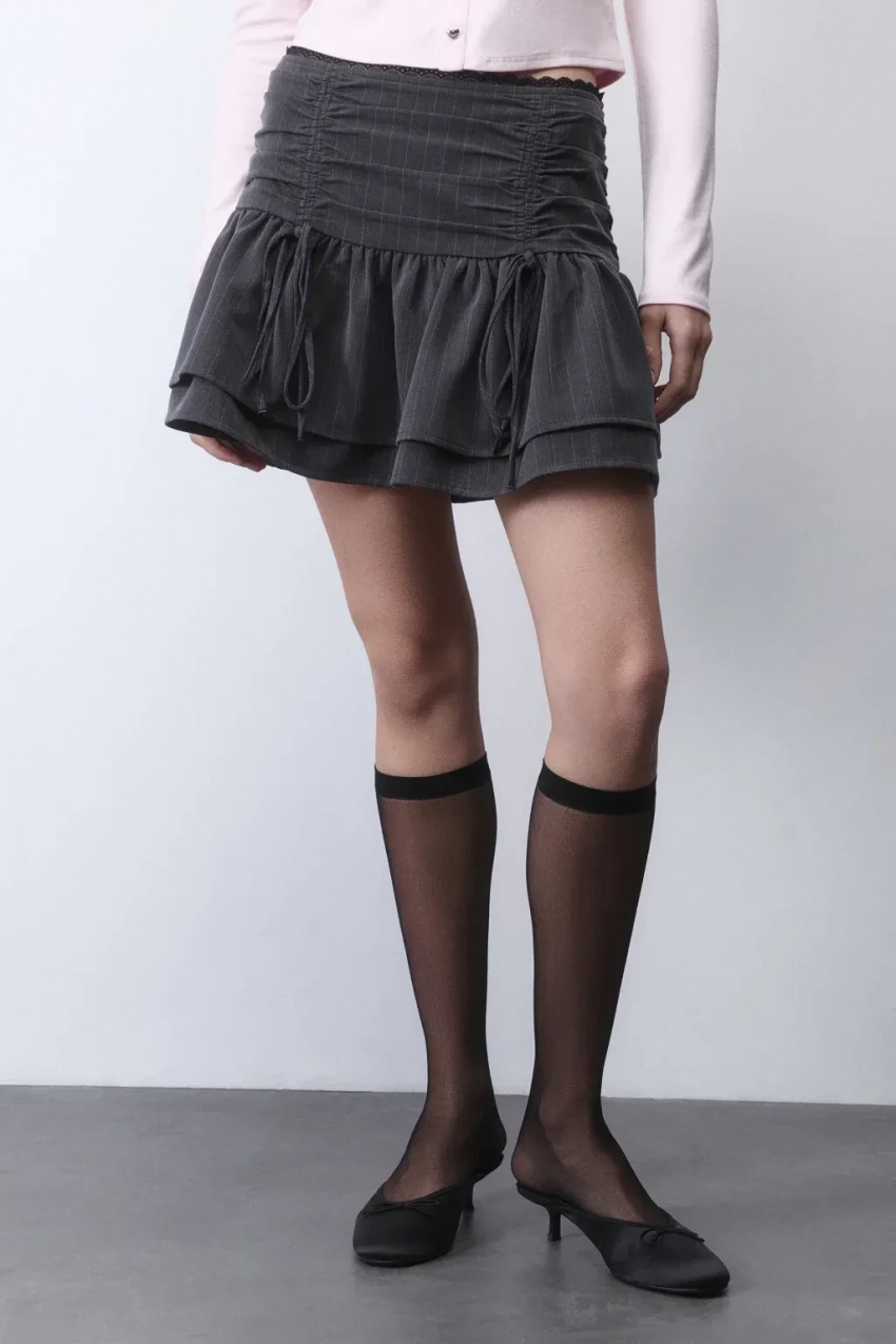 Агния Дитковските и Алексей Чадов в фильме "Жара" (2006)/Фото: кадр из фильма/Art Pictures StudioМелодрама Резо Гигинеишвили "Жара" почти 20 лет назад сделала 17-летнюю Агнию Дитковските звездой, а её героиня Настя запомнилась многим зрителям. В одной из самых узнаваемых сцен фильма, когда на Настю выливают ведро воды, а герой Алексея Чадова приходит ей на помощь и влюбляется, она одета в простой, но запоминающийся образ — розовую футболку и джинсовую мини-юбку, тогда такая была в гардеробе у каждой. Экранная история любви, кстати, вскоре стала реальностью: актёры закрутили роман, который продлился несколько лет. Повторить образ Агнии сегодня легко: футболку заменим на кардиган с завязками, а модные тогда замшевые сапоги на плоской подошве — на казаки.