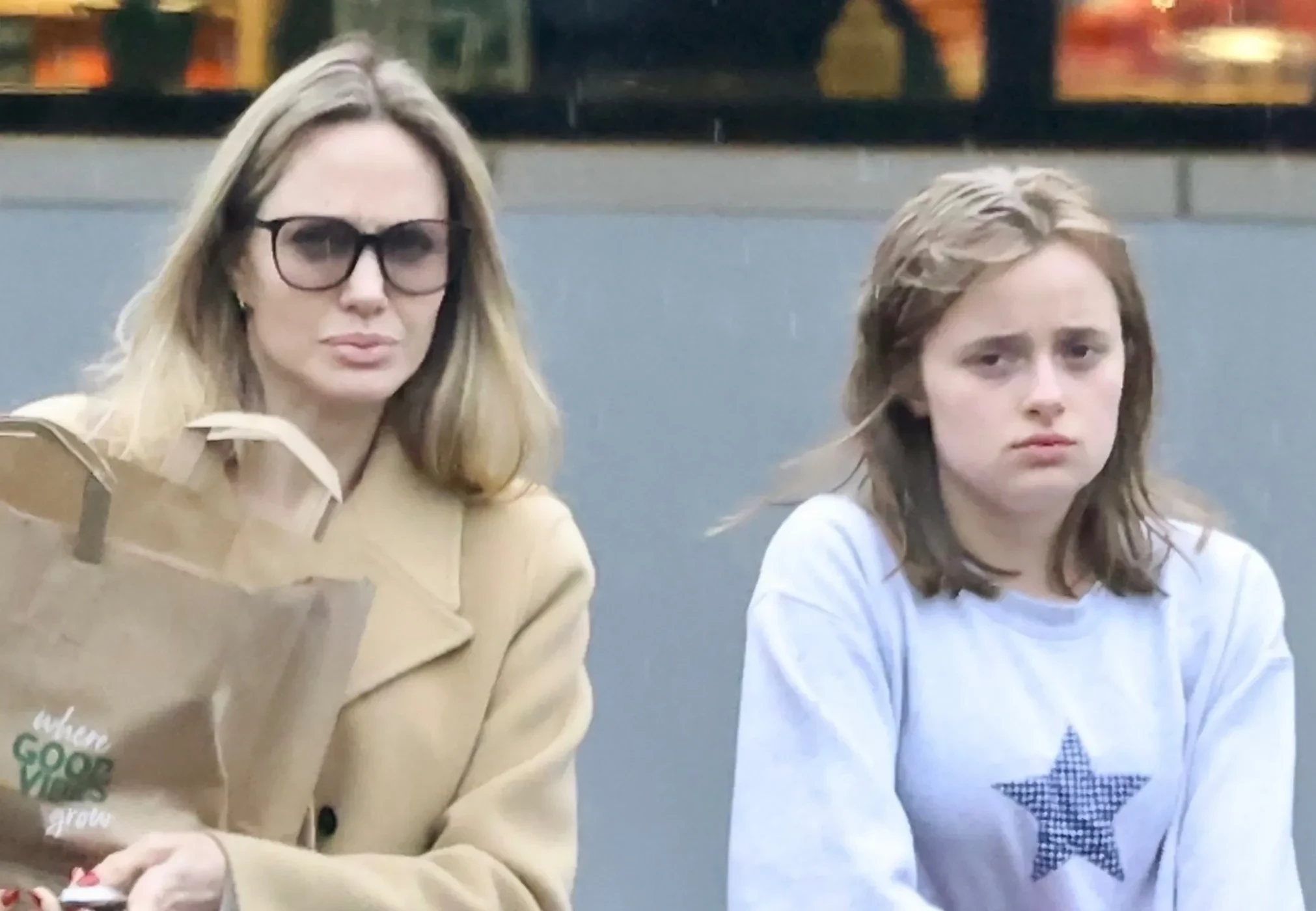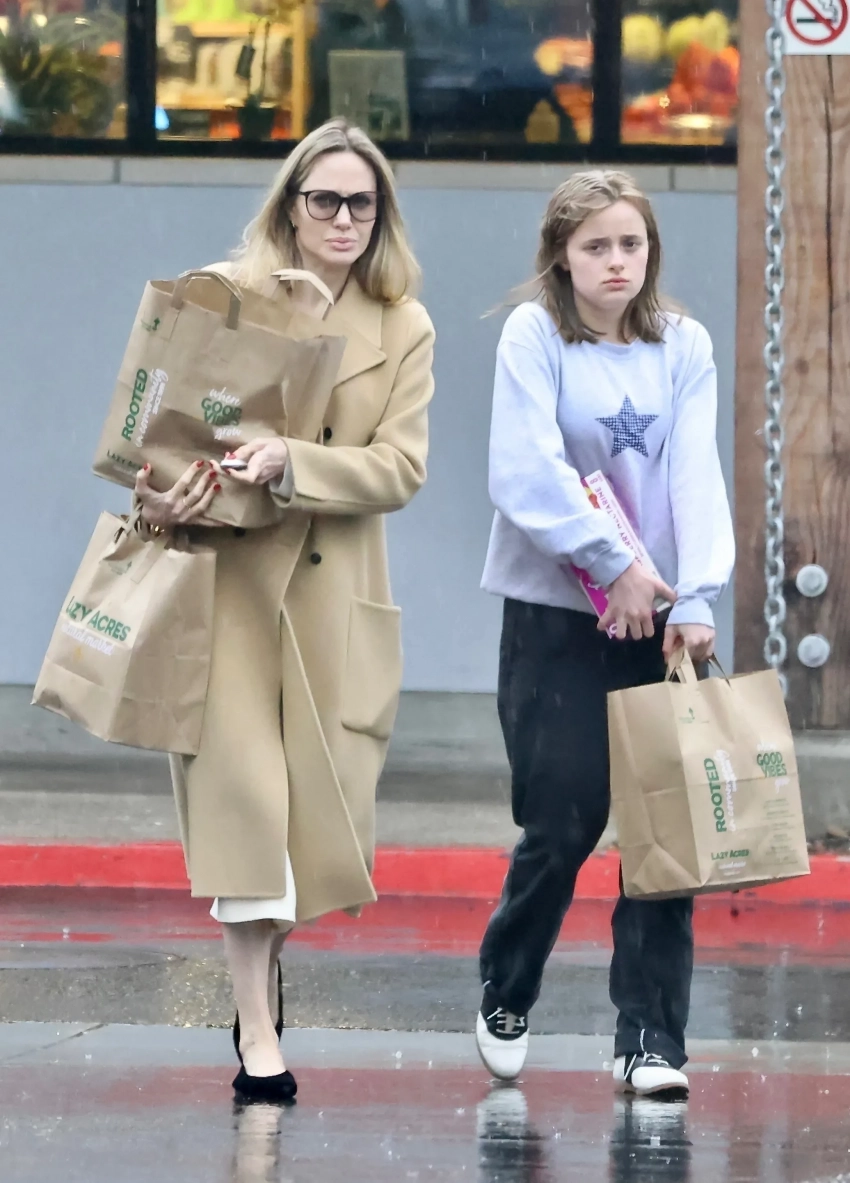 Анджелина Джоли попала в объективы папарацци во время шопинга в Лос-Анджелесе вместе с 16-летней дочкой Вивьен. Для прогулки 49-летняя актриса выбрала молочное платье средней длины, а сверху накинула длинное бежевое пальто. Её образ завершили чёрные балетки и крупные солнцезащитные очки. Вивьен же предпочла более повседневный стиль, надев светло-серый свитшот со звездой, свободные брюки и чёрно-белые кеды. В руках у мамы и дочки были бумажные пакеты с покупками. Пользователи сети давно обсуждали стиль Вивьен, отмечая, что девочка одевается по-мальчишески. Поклонники предполагали, что это связано с тем, что ей некомфортно находиться в постоянном окружении папарацци.