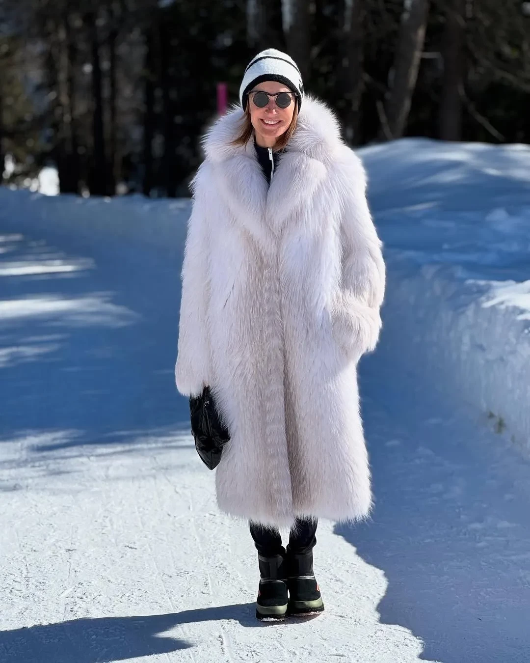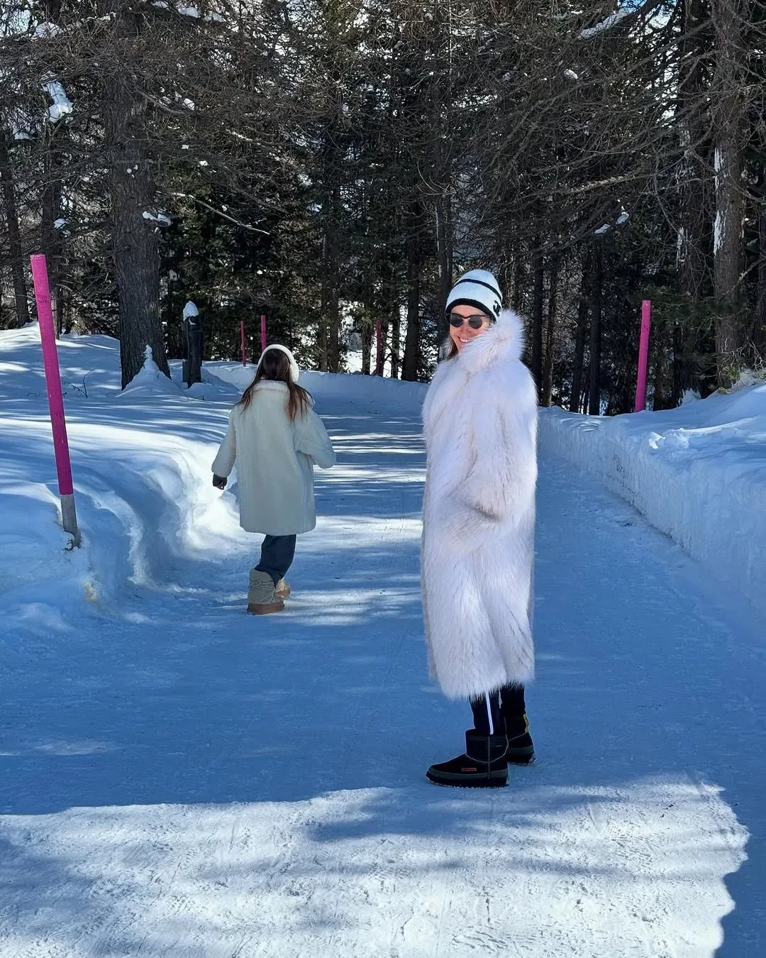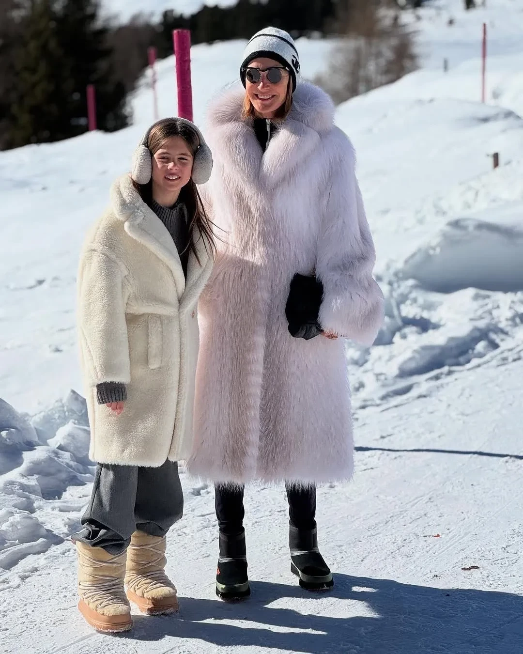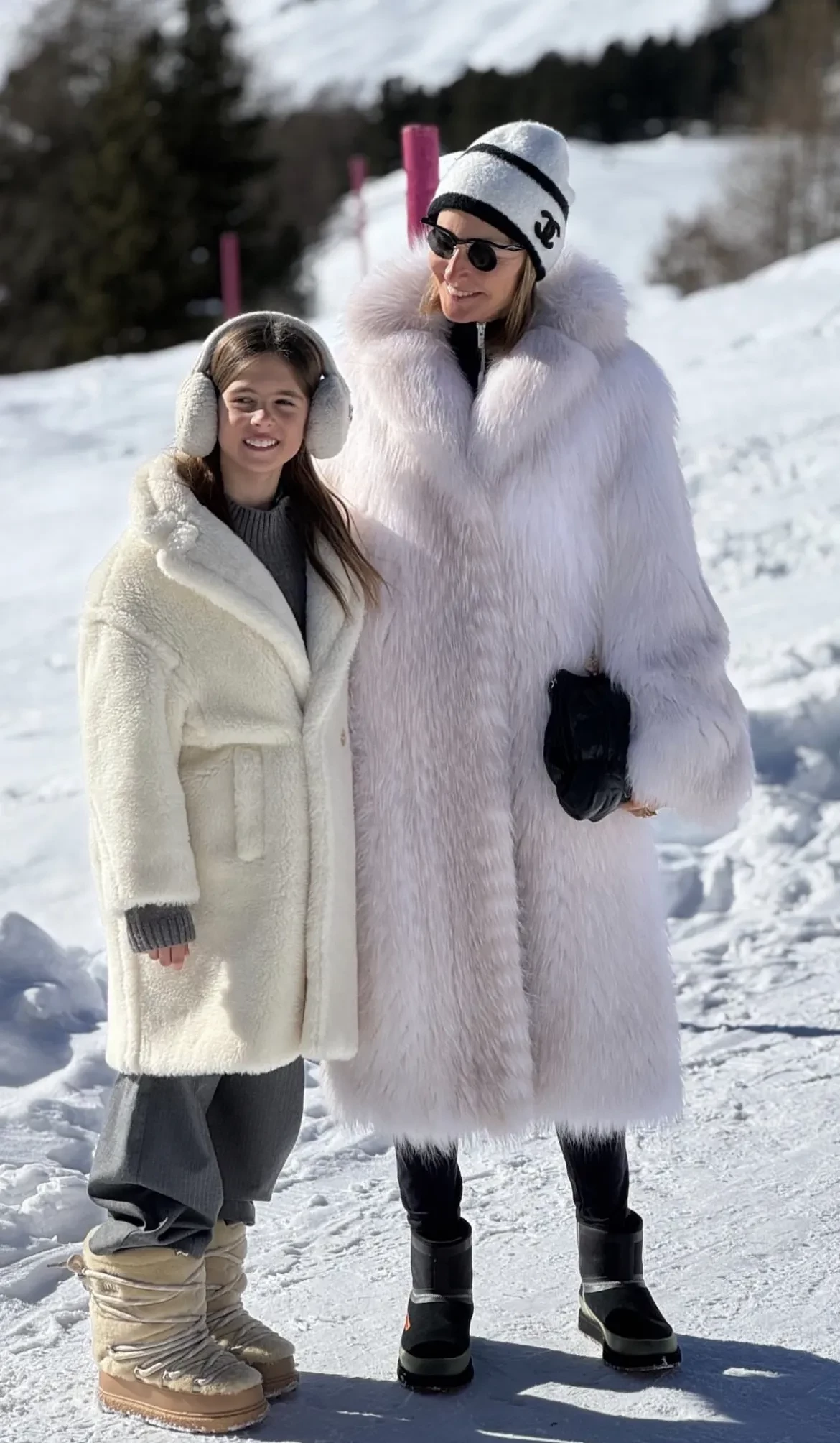 На фото Оксана позирует в белой шубе, шапке Chanel и круглых солнцезащитных очках, а её младшая дочь выбрала плюшевое пальто, меховые наушники и сапоги в тон.