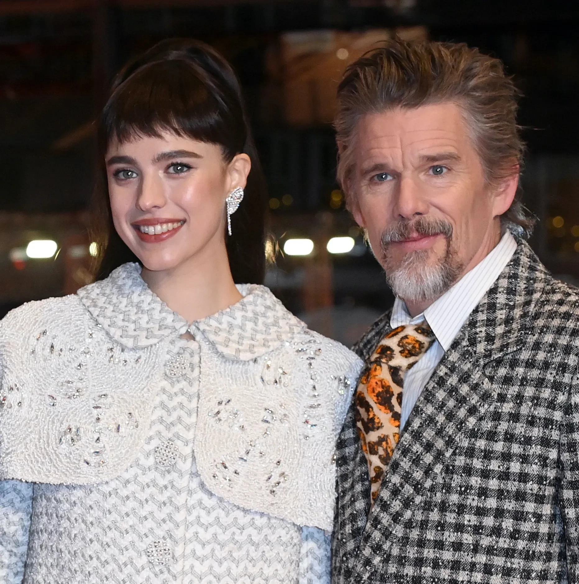 30-летняя Маргарет Куэлли, дочь актрисы и модели Энди Макдауэлл, позировала на красной дорожке в образе Chanel. 54-летний голливудский актёр и экс-супруг Умы Турман Итан Хоук надел костюм в клетку и галстук с леопардовым принтом.