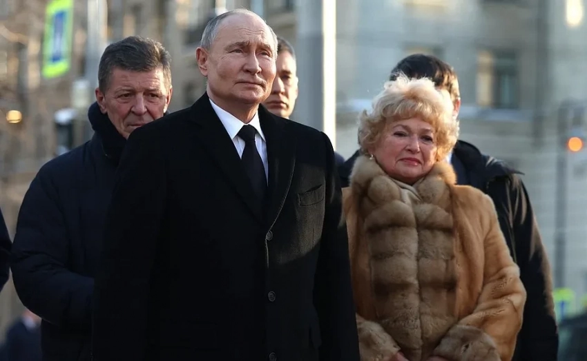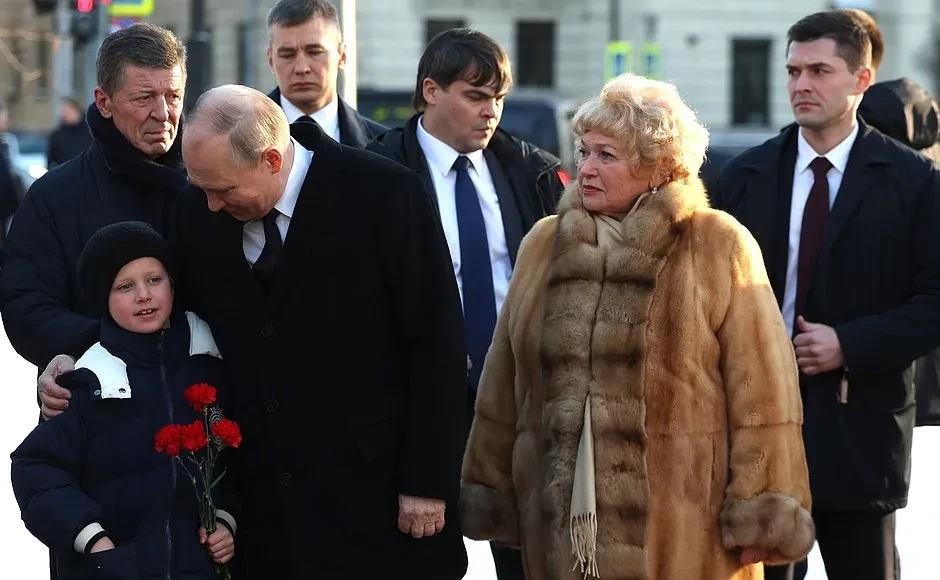 Владимир Путин на возложении цветов к памятнику Анатолию Собчаку/Фото: kremlin.ruСудя по кадрам, Путин также пообщался с Нарусовой, которая появилась у памятника в шубе из натурального меха в пол, и пожал руку Собчак. Последняя выбрала для события чёрное пальто и шапку "гоголь".