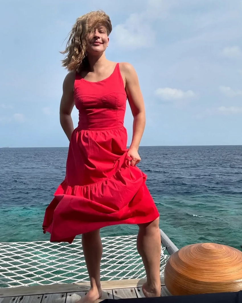 На снимках Анна позирует в бикини и мини-платьях на территории роскошного отеля Joali Resort, в котором остановилась семья. 40-летняя Юлия Пересильд опубликовала фото в красном платье, а Мария Пересильд поделилась селфи со старшей сестрой.
