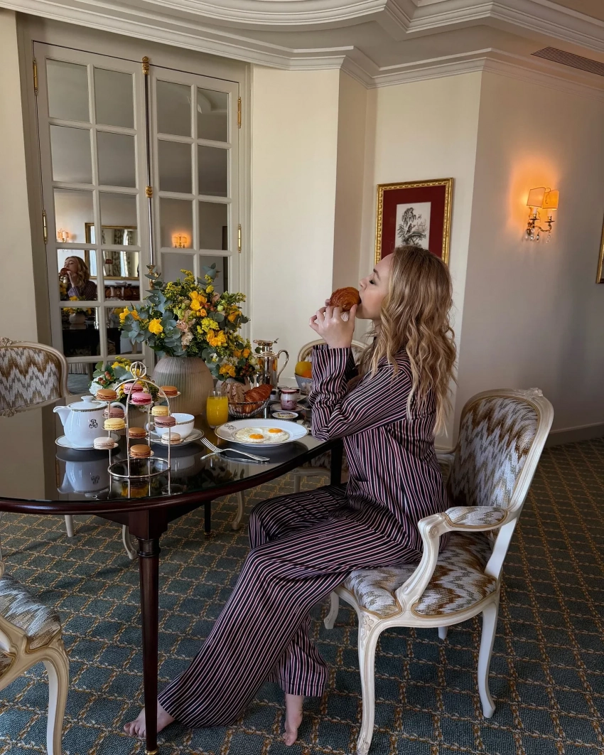 Яна Рудковская/Фото: rudkovskayaofficial/Instagram*Яна Рудковская/Фото: rudkovskayaofficial/Instagram*Яна Рудковская/Фото: rudkovskayaofficial/Instagram*Яна Рудковская/Фото: rudkovskayaofficial/Instagram*Яна Рудковская/Фото: rudkovskayaofficial/Instagram*Также продюсер опубликовала несколько снимков из своего отеля Bristol: из холла, а также из номера, где она завтракает в полосатой пижаме. Рудковская рассказала, что сейчас живёт в номере, где снимали сцены из фильма Вуди Аллена "Полночь в Париже". "Аллен всегда тут останавливается и часто додумывает свои фильмы по ходу съёмок", — подписала Рудковская фотографии. Её муж, 42-летний фигурист Евгений Плющенко, не поехал с ней в Париж, сейчас он ставит новое ледовое шоу.