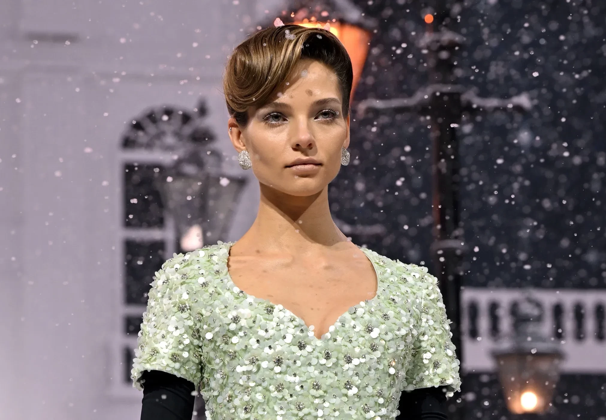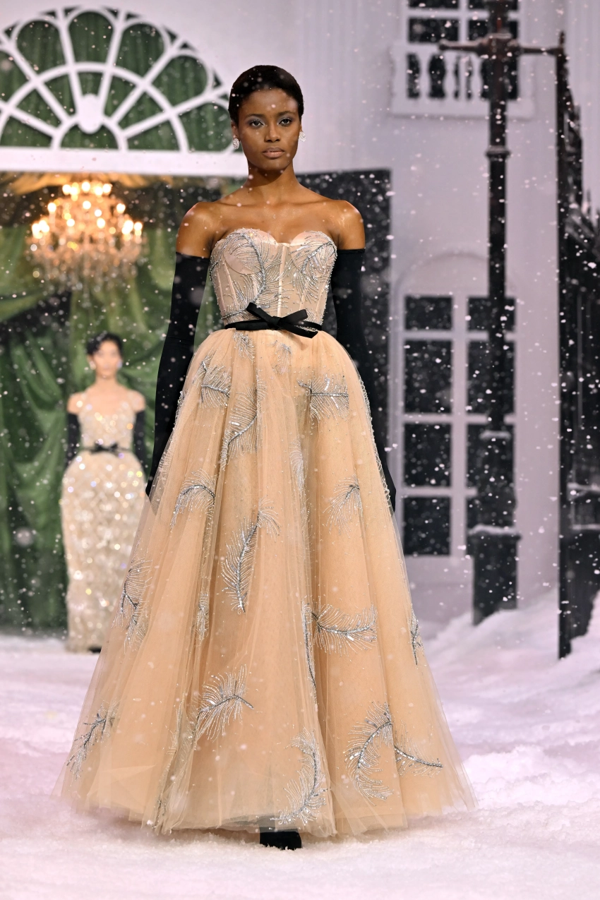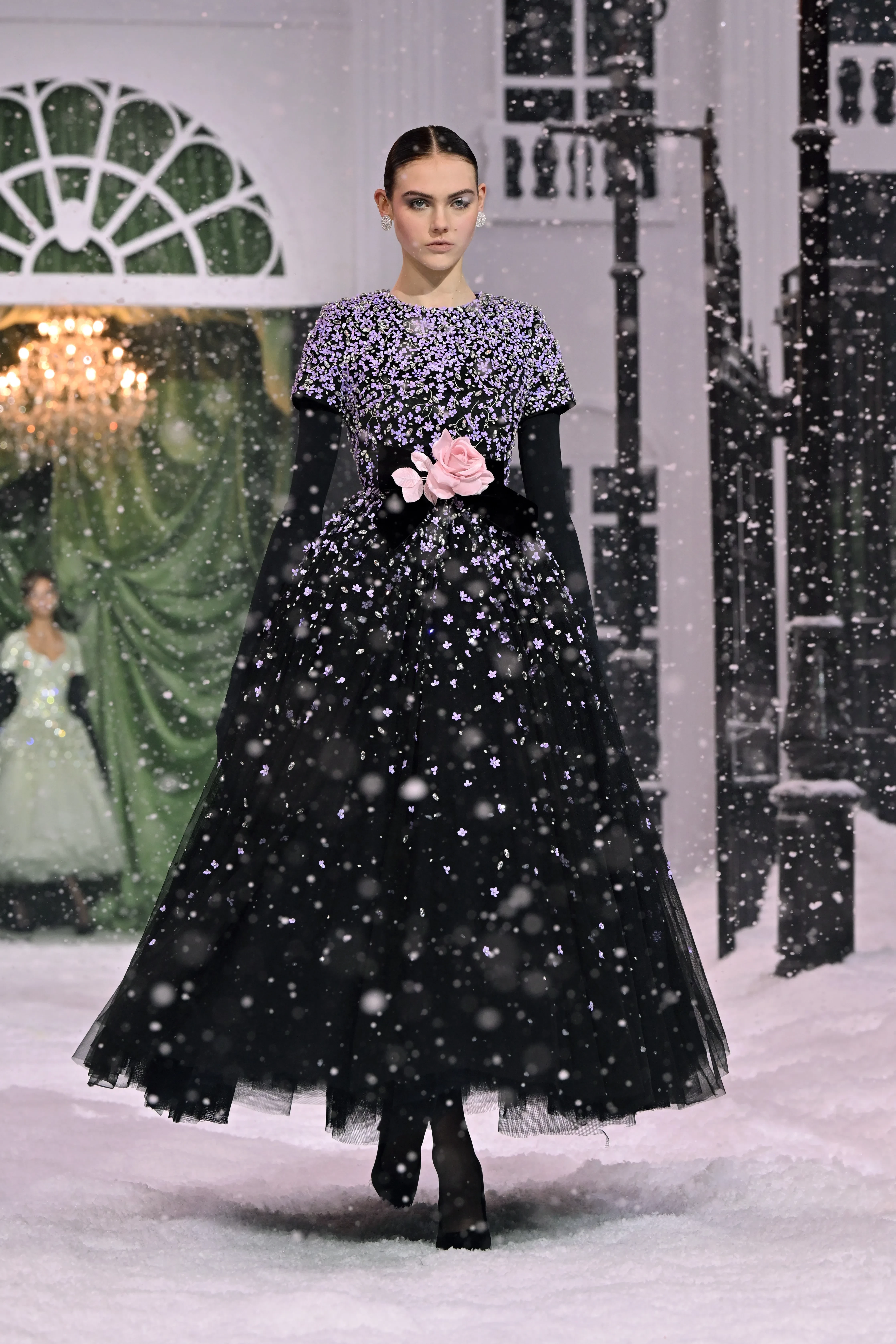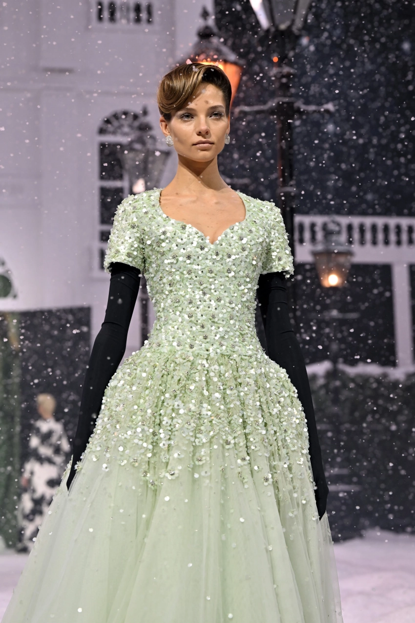 Алеся Кафельникова/Фото: Jeff Spicer/Getty Imageshttps://t.me/spletnikru2024/24783Модное шоу Richard Quinn было оформлено в стиле зимней сказки. Коллекция бренда состояла в основном из романтичных платьев, украшенных бантами и розами.