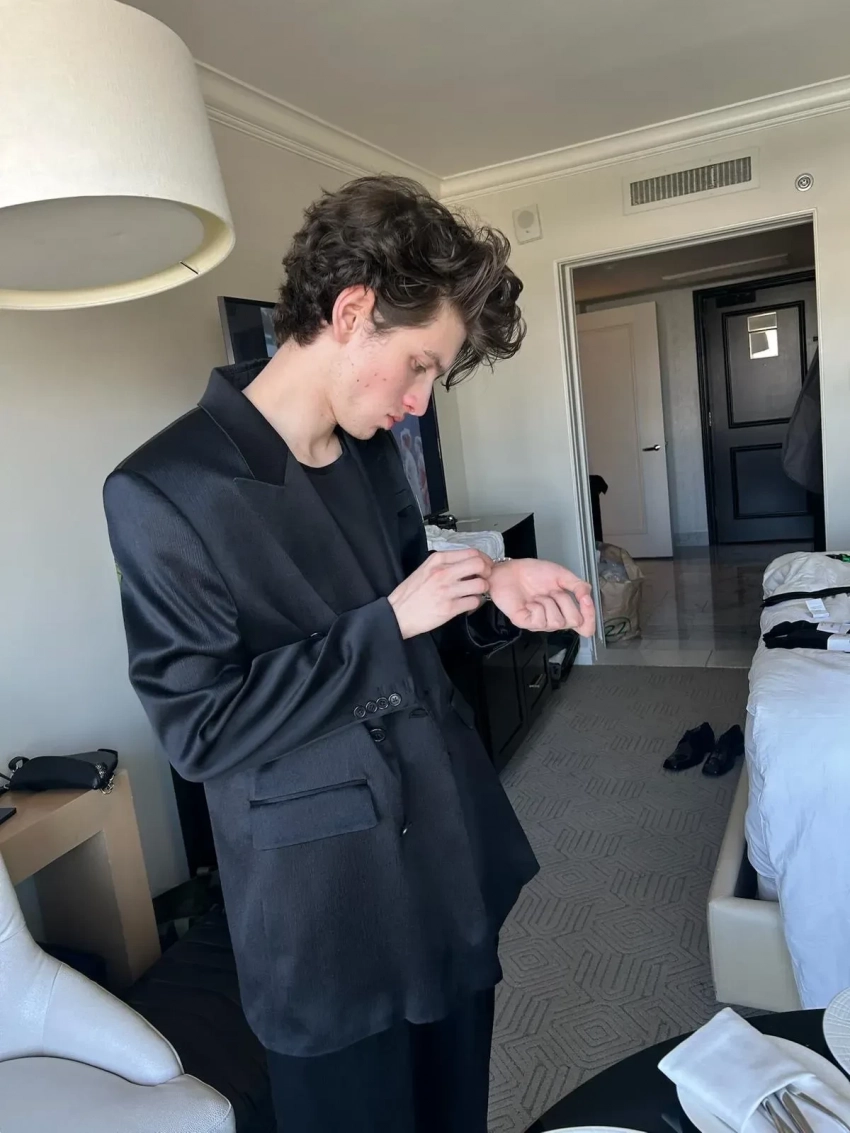 Марк Эйдельштейн/Фото: Mark Eydelshteyn/Vogue"Фильм полностью изменил мою жизнь. Теперь я знаю этих невероятных людей и артистов, познакомился с таким количеством талантливых людей", — добавил Марк, пока готовился к выходу на красную дорожку, примеряя костюм Saint Laurent. Бренд подобрал для актёра образ total black из футболки, пиджака и брюк. Кстати, самые известные модные дома сами связываются с Эйдельштейном, предлагая нарядить его на мероприятия. На "Золотом глобусе" он позировал в тотал-луке Prada, а на BAFTA — в Alexander McQueen.