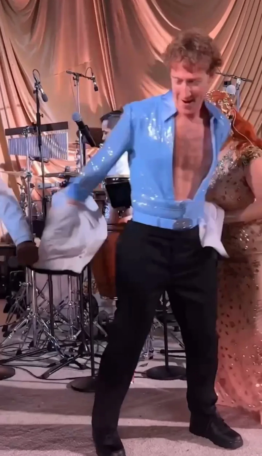 Главные новости » Шоу-Бизнес » Голубое трико в блестках: Марк Цукерберг повторил вирусный номер Бенсона Буна на юбилее жены