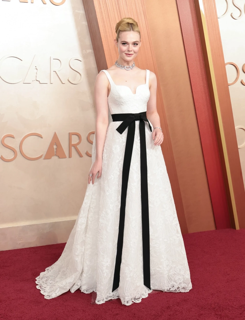 62-летняя Деми Мур позировала в облегающем кутюрном платье Armani Privé и бриллиантовых серьгах Chopard в 17 карат, а её коллега по "Субстанции" Маргарет Куэлли надела платье Chanel с открытой спиной. Селена Гомес, которую подозревают в похудении с помощью "Оземпика", пришла в блестящей "чешуе" Ralph Lauren. Кутюрное платье украшено кристаллами ручной работы и более чем 16 тысячами стеклянных капель. Эль Фаннинг примерила трендовый babydoll-образ Givenchy в стиле Одри Хепберн с бантом (они были популярны на дорожке в этом году), а Лили Роуз Депп — нуарный образ Chanel. Галь Гадот — одна из немногих селебрити, кто выбрал яркий наряд и пришёл на церемонию в пышном алом платье Prada и колье Tiffany & Co.