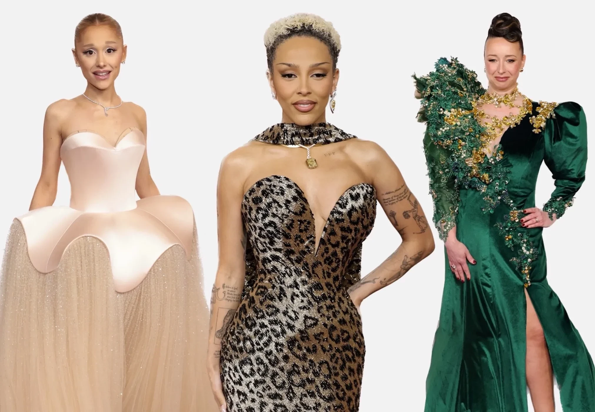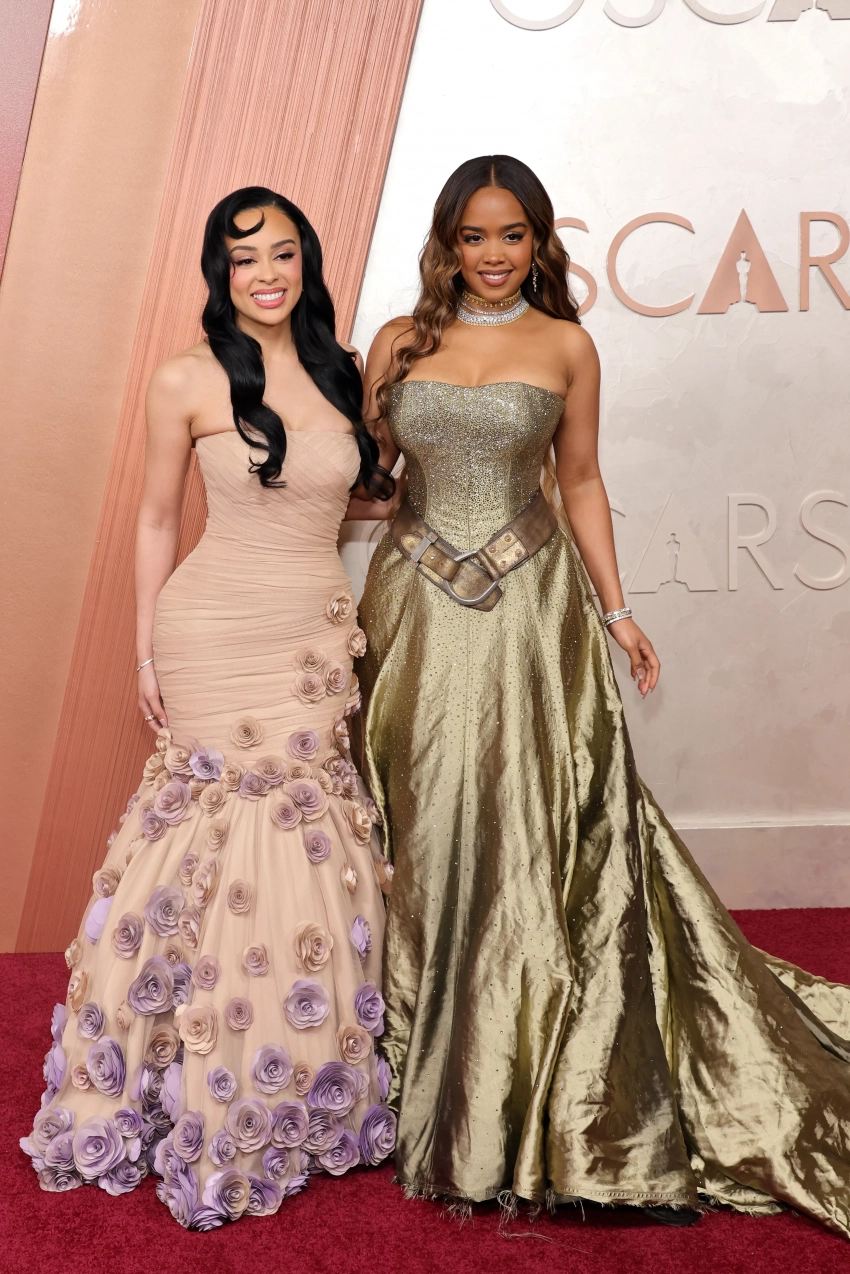 Вупи Голдберг примерила странное "голографическое" платье Cristian Siriano, а Зои Салдана, получившая статуэтку за лучшую женскую роль второго плана, надела платье Saint Lauren с воланами, которое портит неудачный верх из сетки. Ариана Гранде снова слилась с фоном в кутюрном платье Schiaparelli. Последнее время звезда выходит на дорожки в "бледных" образах, которые ей не идут. Хотя для выступления на сцене во время церемонии певица выбрала отличный вариант — красное пышное платье того же бренда.