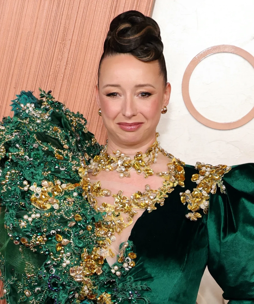 Звезда фильма "Боб Дилан: Никому не известный" Моника Барбаро, возможно, хотела повторить культовый выход Гвинет Пэлтроу на "Оскаре" в 1999 году, но что-то пошло не так. Актриса выбрала розовое платье Dior, но "пушистый" лиф грязно-бежевого оттенка испортил образ. Визажистка Лора Блаунт, которая работала над макияжем актёров в фильме "Злая", впечатлила своим образом на дорожке. Она надела зелёное платье с разрезом и массивным верхом, а на голове соорудила пучок. Так и до Лены Лениной недалеко.