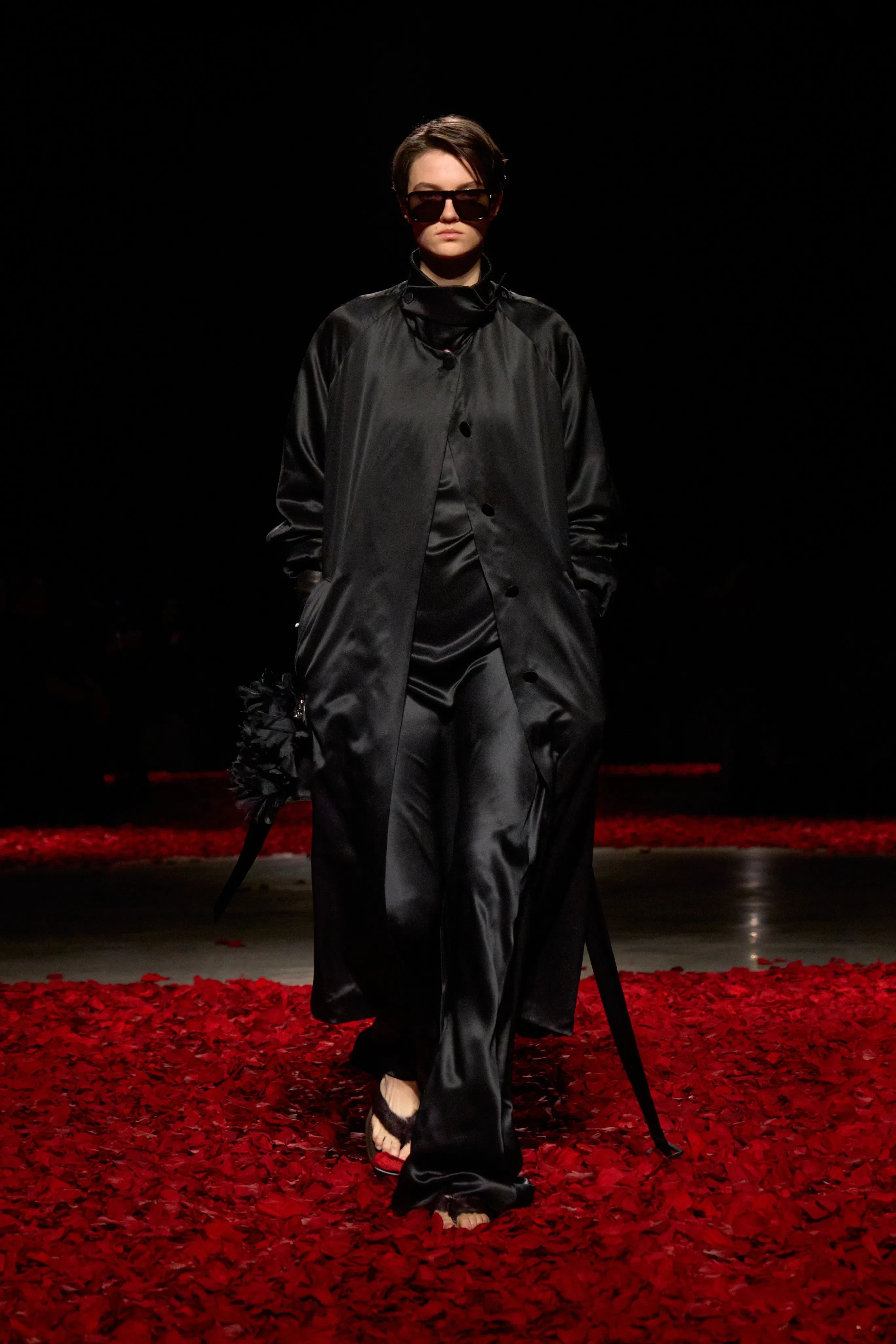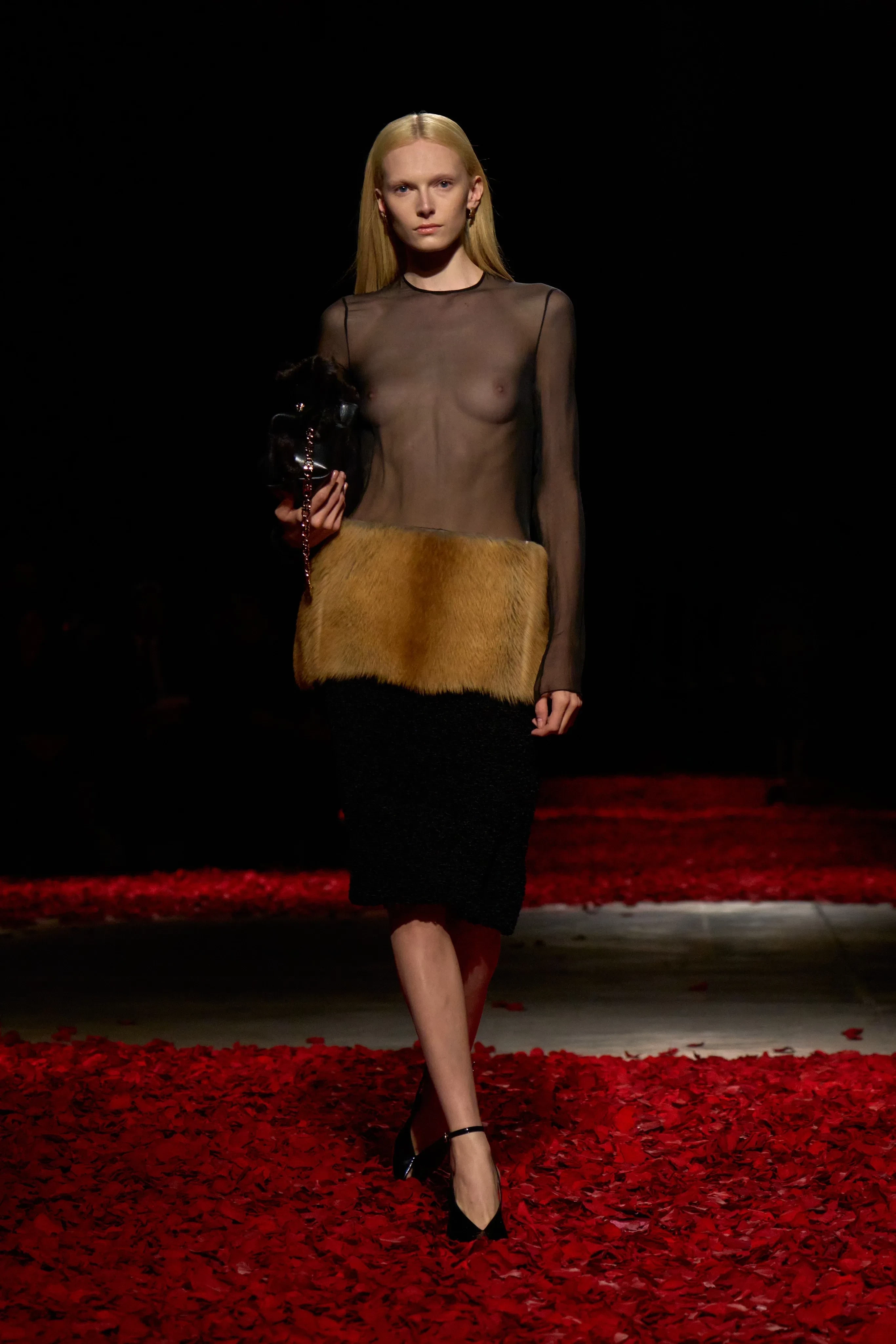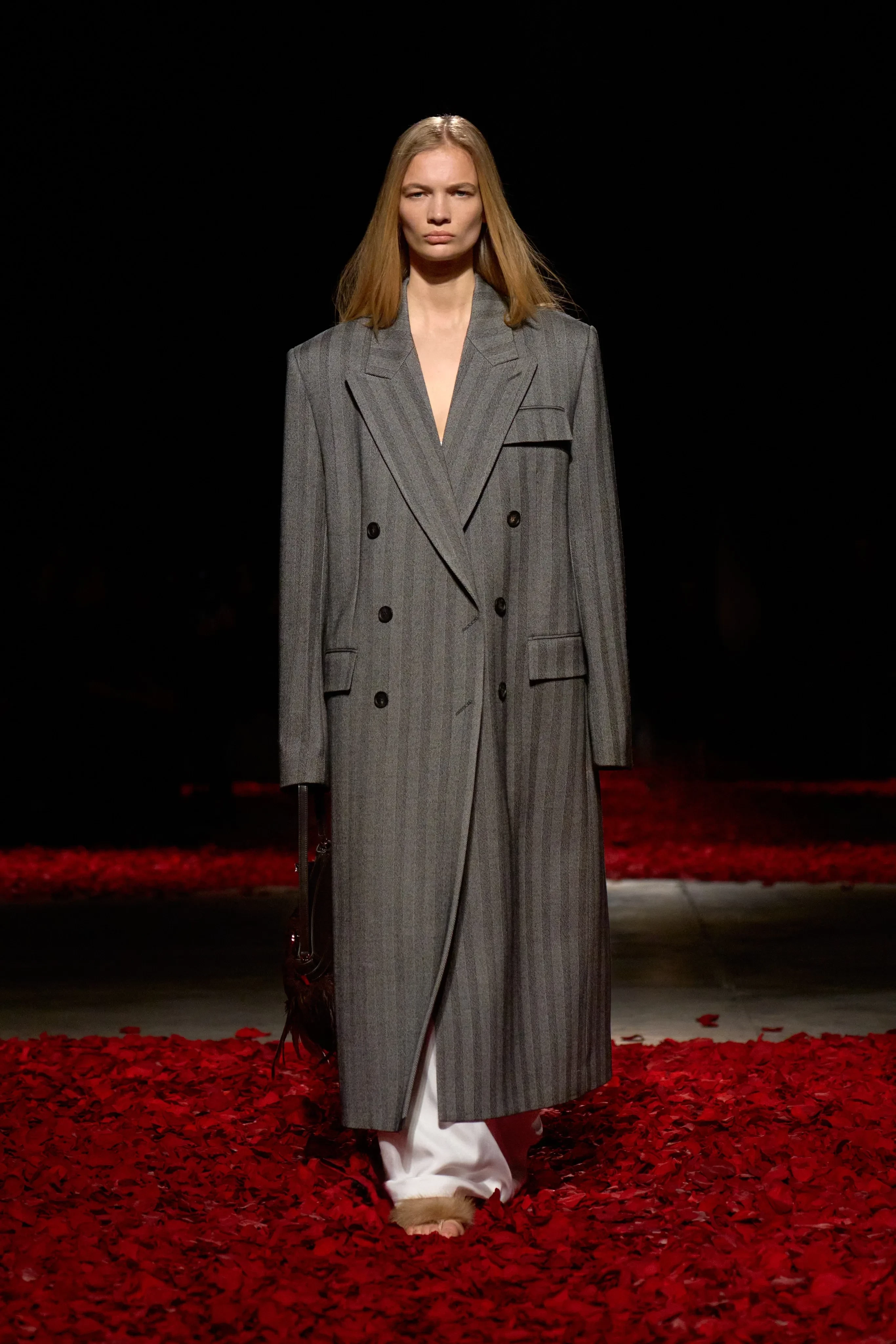 Изабелла Феррари/Фото: ferragamo/Instagram*Показ осенней коллекции Ferragamo стилизовала Лотта Волкова, а модели шли по подиуму, усыпанному лепестками роз. Адриана Лима дефилировала в кожаном плаще трендового коричневого оттенка, а Мона Тугаард закрыла шоу в прозрачном платье с кисточками. В новом сезоне креативный директор бренда Максимилиан Дэвис также представил изделия из меха и шёлка, платья и пальто из костюмной ткани, а также туфли с открытым мысом и сланцы.