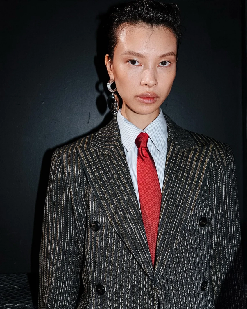 Карен Бланчард/Фото: ferraristyle/instagram*Под руководством креативного директора Рокко Янноне бренд представил коллекцию, вдохновлённую динамикой легендарных автомобилей Ferrari. Коллекция открылась с переосмысления делового стиля: серые плиссированные костюмы сочетались с массивными меховыми и верблюжьими пальто и дополнялись галстуками Rosso Corsa. Среди ключевых элементов коллекции — меховые пальто, золотые ткани с бахромой и кожаные аксессуары. Фирменной деталью, возвращающейся из сезона в сезон, стали перчатки — неизменный атрибут поклонников Ferrari.