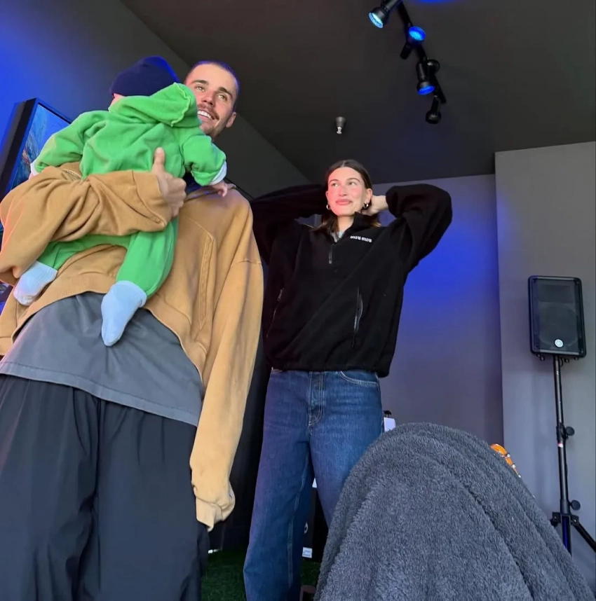 Джастин Бибер с сыном и женой Хейли/Фото: justinbieber/Instagram*