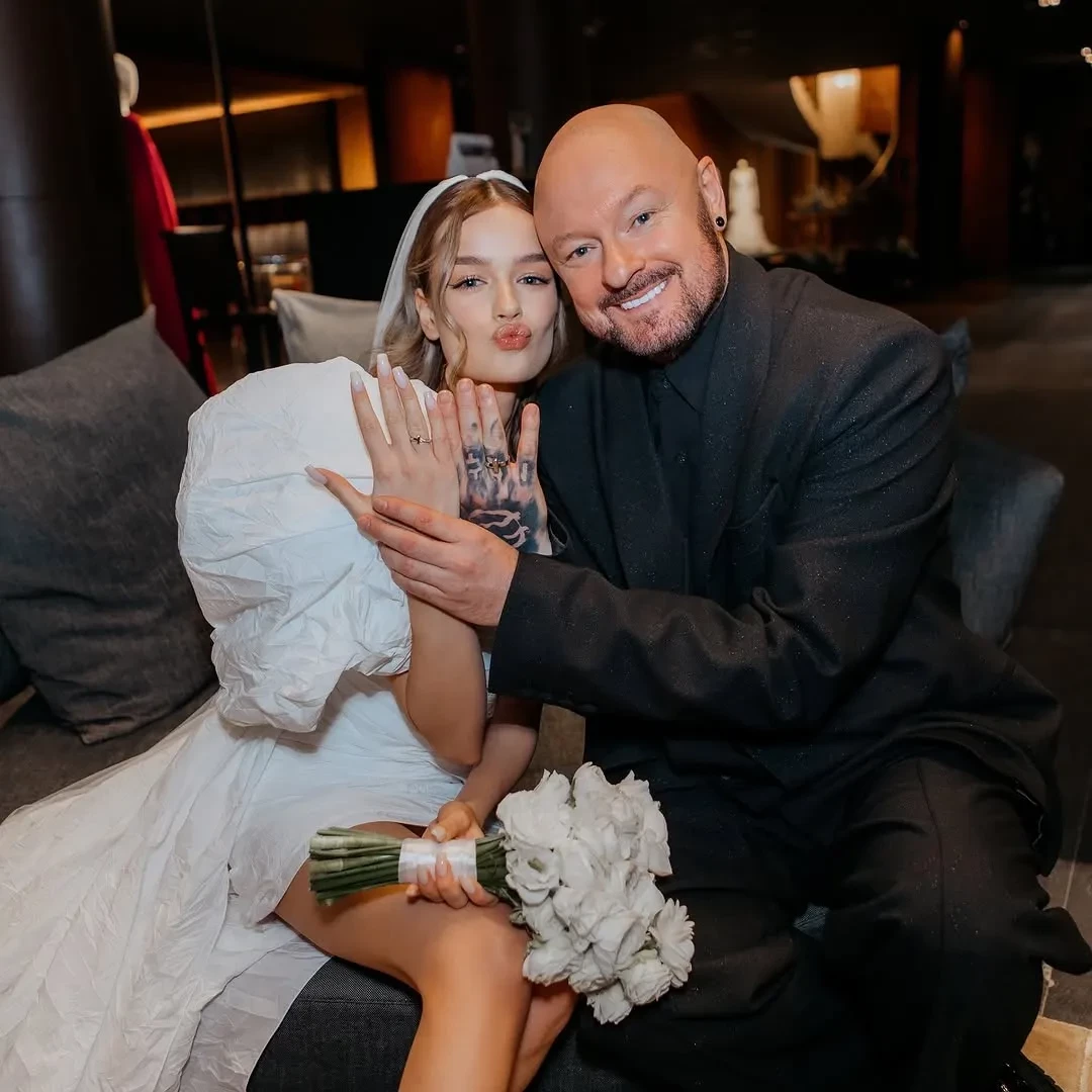 Свадьба Александрины Олексюк и Марка Горобца/Фото: aleksandrinaoleksyuk/Instagram*Свадьба Александрины Олексюк и Марка Горобца/Фото: aleksandrinaoleksyuk/Instagram*Свадьба Александрины Олексюк и Марка Горобца/Фото: aleksandrinaoleksyuk/Instagram*Свадьба Александрины Олексюк и Марка Горобца/Фото: aleksandrinaoleksyuk/Instagram*Свадьба Александрины Олексюк и Марка Горобца/Фото: aleksandrinaoleksyuk/Instagram*Свадьба Александрины Олексюк и Марка Горобца/Фото: aleksandrinaoleksyuk/Instagram*В ноябре минувшего года стало известно о помолвке 49-летнего Горобца и Олексюк: она произошла во время съёмок фильма "Тур с Иванушками", созданием которого занимался Горобец и где Александрина играла одну из главных ролей. При этом в момент, когда режиссёр делал предложение актрисе, она ещё была несовершеннолетней. Пара поженилась в конце декабря и уже несколько раз вместе выходила в свет.