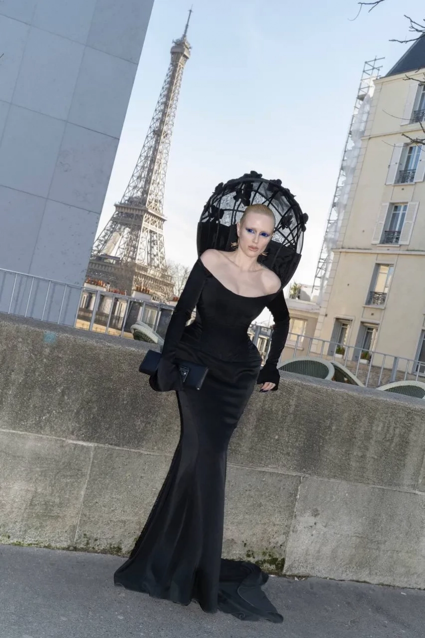Основательница концепт-стора КМ20 Ольга Карпуть пришла на шоу в том же платье от Рика Оуэнса, в котором позировала вместе с ним на светском ужине в Лувре, а дебютное появление Zivert на Неделе моды в Париже привело к скандалу в телеграме. Певицу собрал на показ её стилист Николай Овечкин, что не понравилось его коллеге Михаилу Барышникову: Zivert позировала в тотал-образе бренда и пообщалась с супругой и музой дизайнера Мишель Лами. Виктория Салават надела на мероприятие готический образ от российского дизайнера Татьяны Кочновой, а макияж ей сделала популярная визажистка Фариза Родригез.