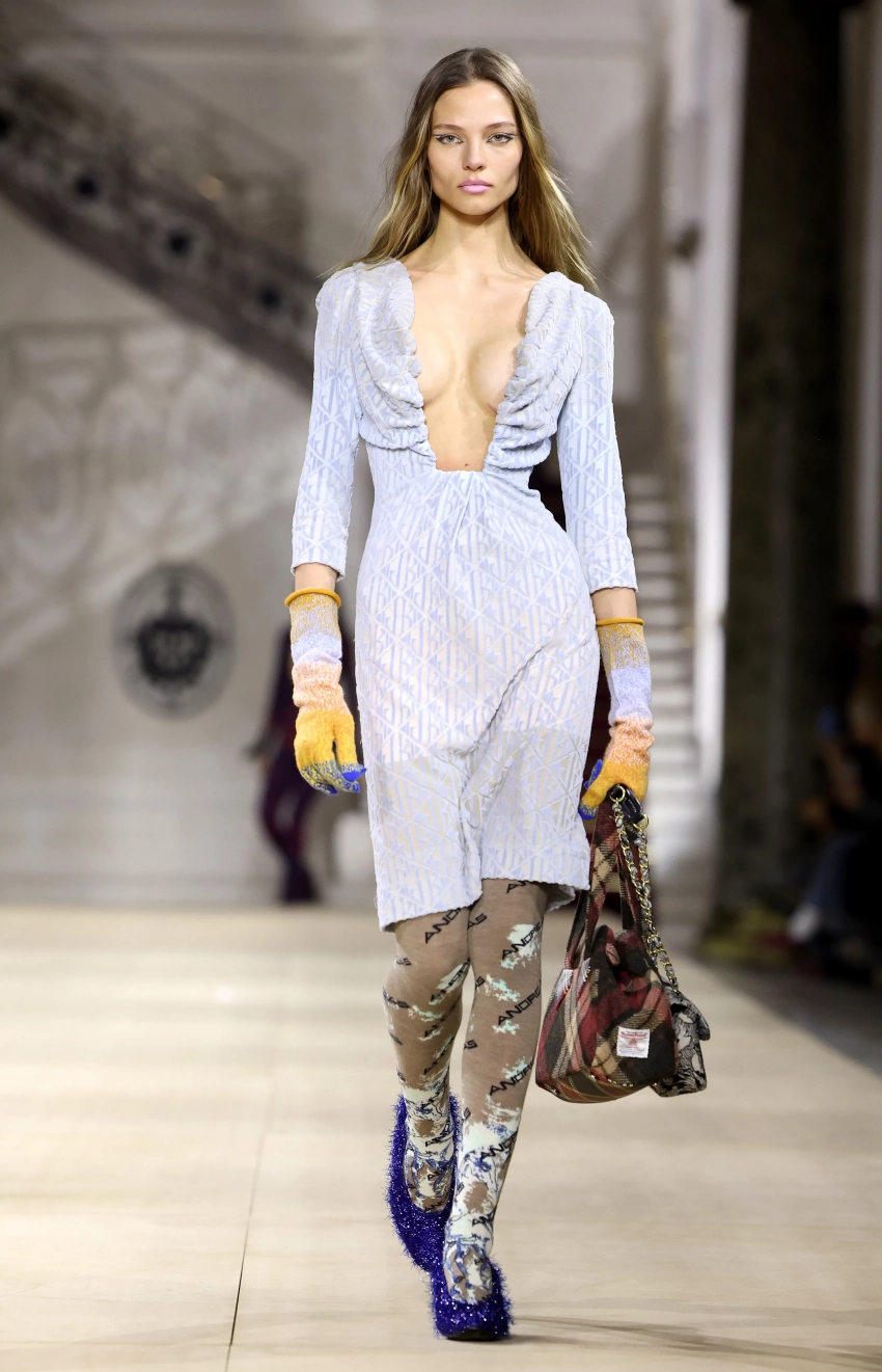 Первым из них стал показ новой осенне-зимней коллекции Vivienne Westwood. Алеся появилась под софитами в нежно-голубом платье с глубоким декольте, которое дополняли необычные аксессуары в стилистике бренда.