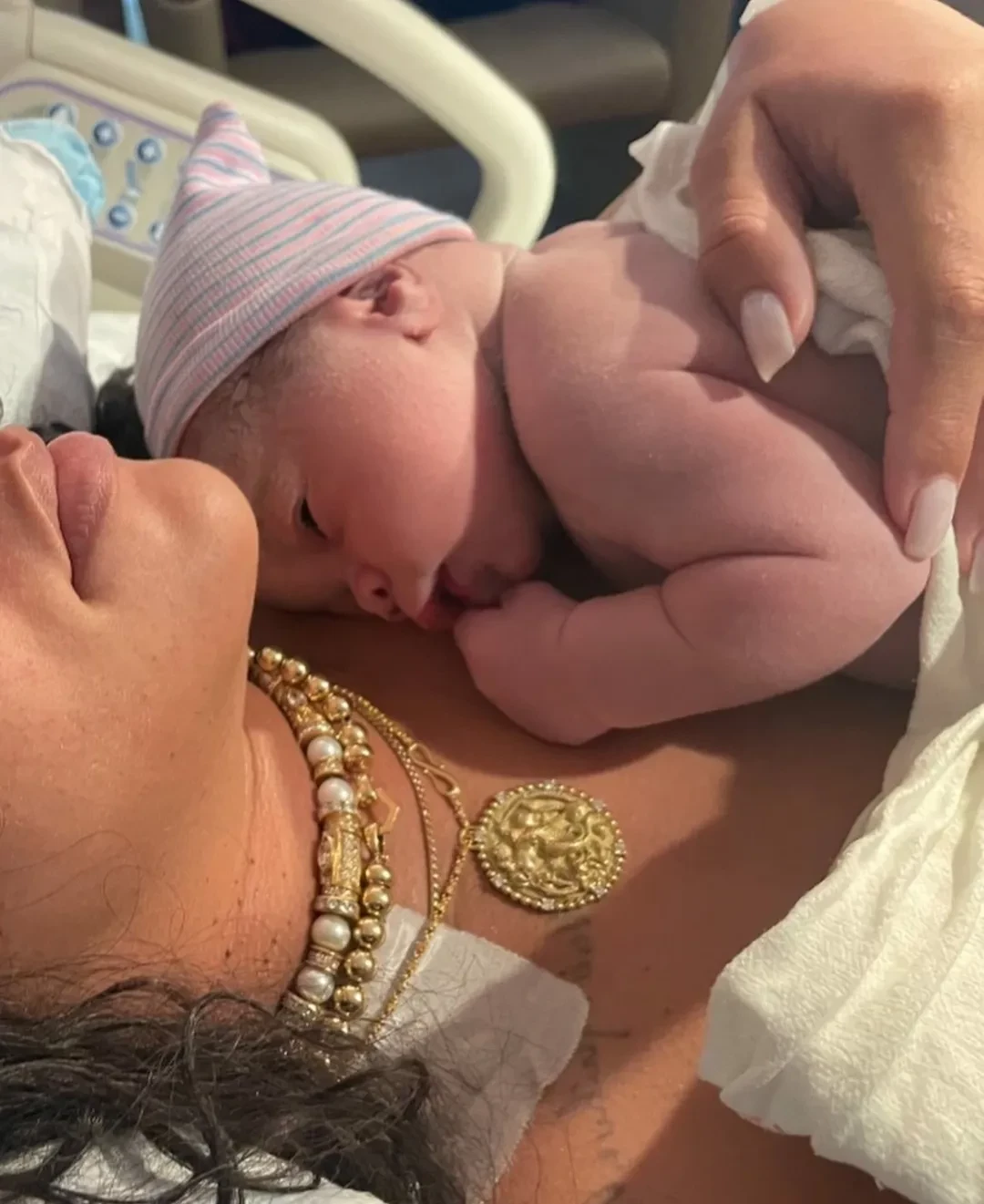 “Пока что самое важное, что я сделала как женщина. Мои два маленьких чуда. И да, я рожала в солнцезащитных очках и жемчугах. Не спрашивайте, это были суматошные дни”, — написала Рианна, показавшая себя в с сыновьями от A$AP Rocky в больничной палате сразу после родов.