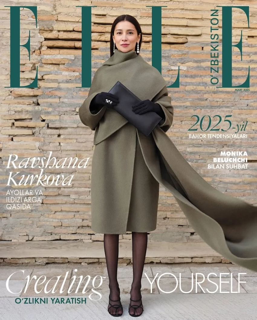Равшана Куркова стала героиней двух обложек нового номера журнала Elle (Узбекистан), который выходит на русском и узбекском языках. На снимках 44-летняя актриса позирует в модных образах на фоне своего родного города Ташкента. Она примерила платье в горошек с высокими перчатками, пальто чёрного и оливкового оттенков с босоножками и белое платье.