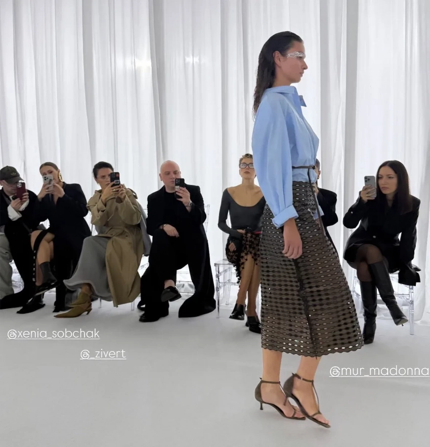Ксения Собчак пришла на показ в пальто и обуви Ruban, юбке Prada и с сумкой Alaia. Компанию ведущей в первом ряду составила Zivert, появление которой на недавней Неделей моды в Париже не понравилось стилисту Михаилу Барышникову и спровоцировало микроскандал в телеграме. "Сидим с Zivert на показе Ruban. Пока никто не прогоняет. Миши Барышникова не видать", — пошутила Ксения в соцсетях. Cтилист ответил, что он "застрял в Париже" и "благословляет" певицу на моду.