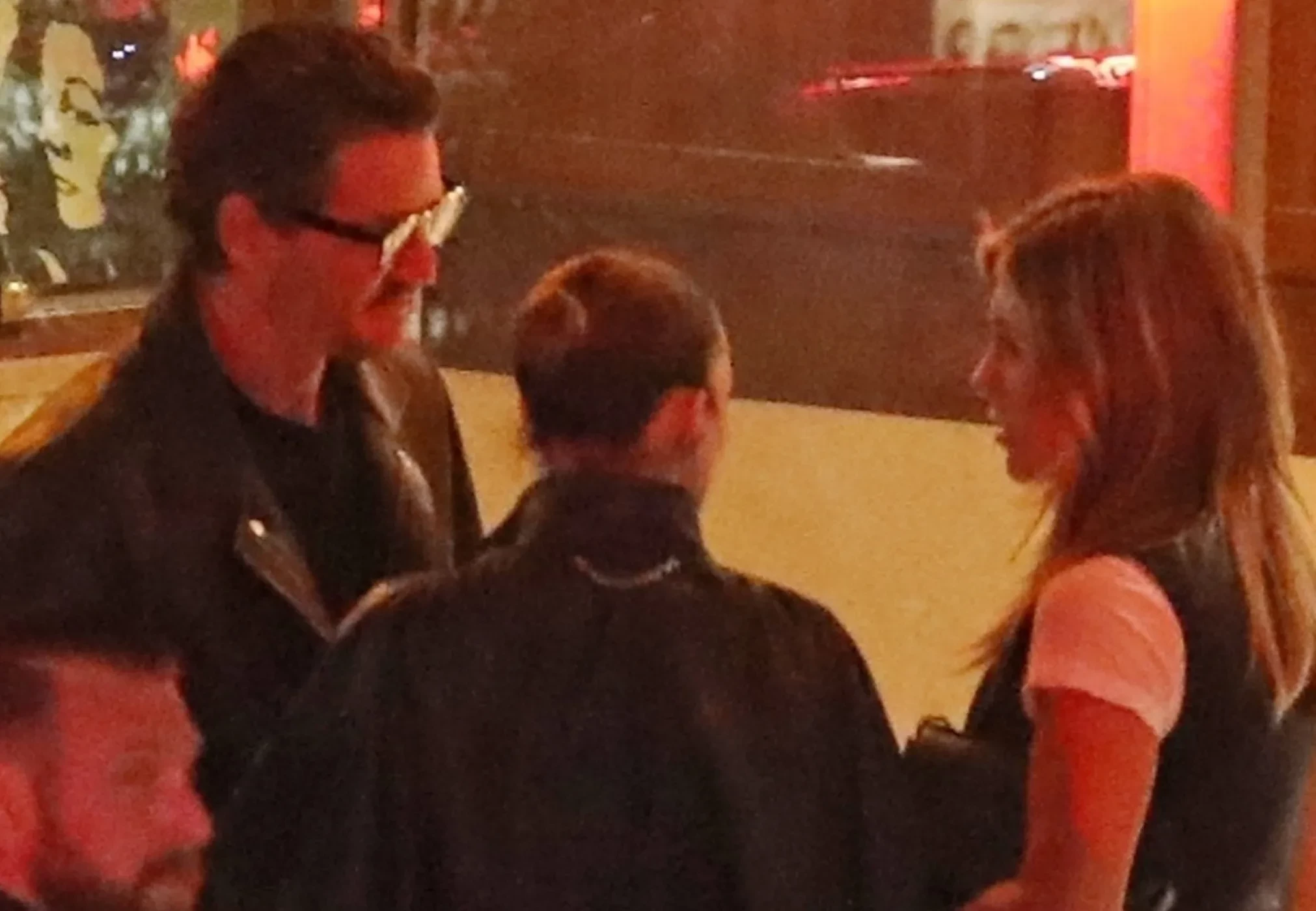 Папарацци засняли Энистон и 49-летнего Паскаля беседующими на парковке возле отеля Sunset Tower после трёхчасового ужина в местном ресторане. На встрече Дженнифер была одета в тёмно-синие джинсы, чёрный жилет и белую футболку. На Педро были синие джинсы, чёрная рубашка и коричневая кожаная куртка.