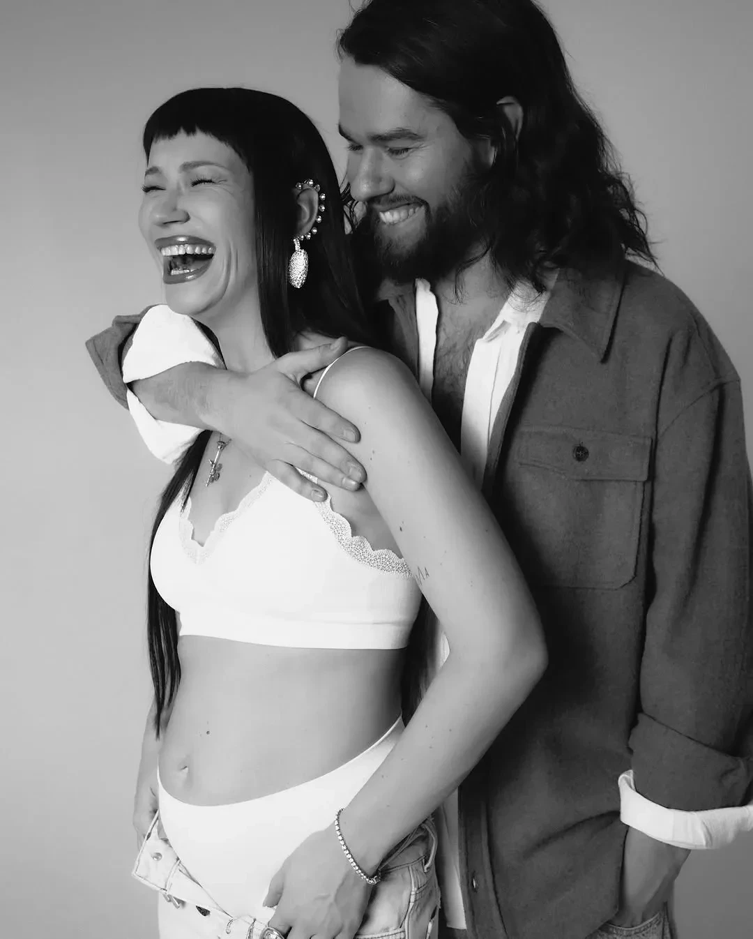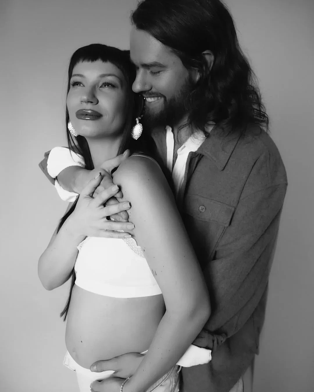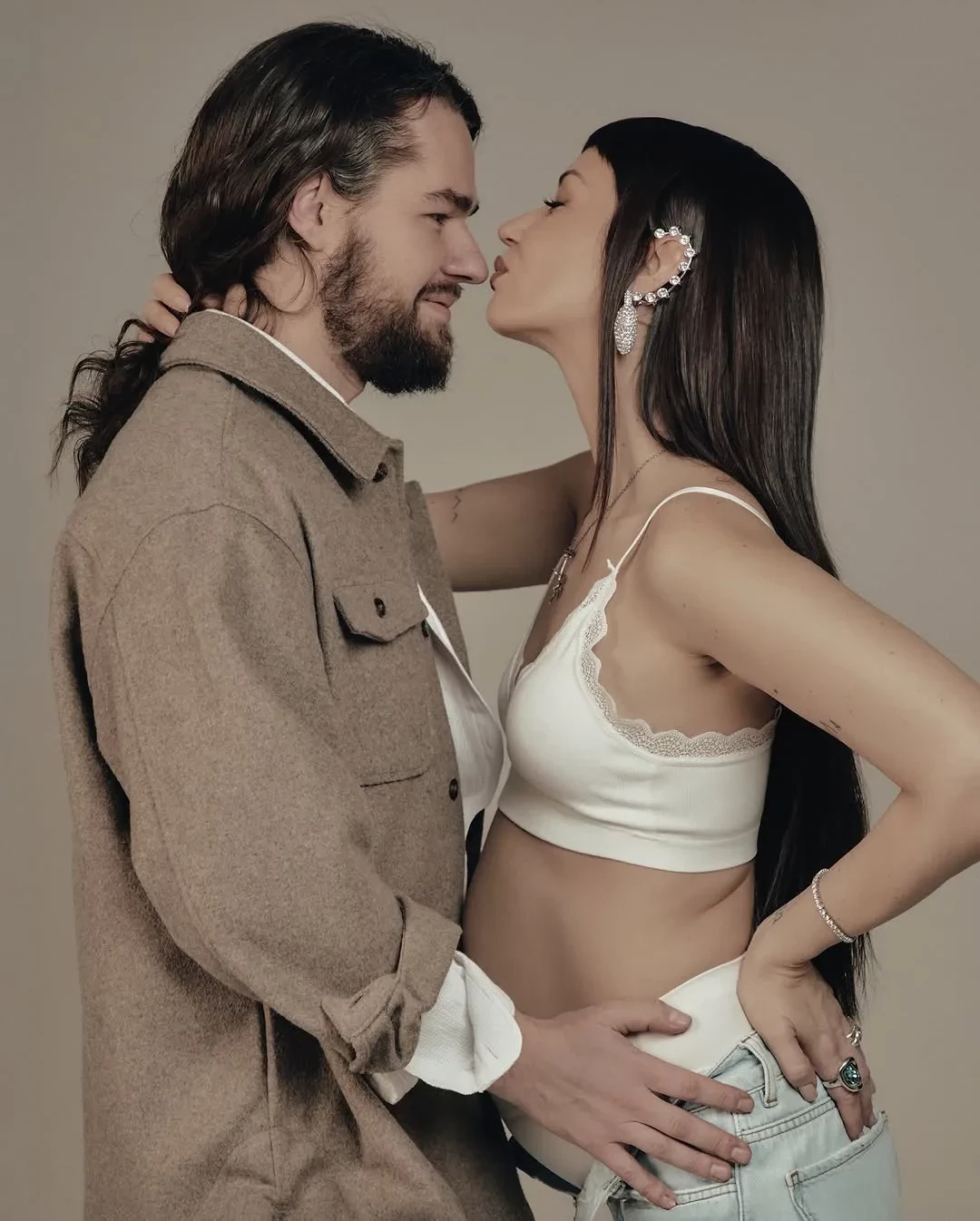 "Прекрасное время. Почти шесть месяцев у меня под сердцем маленький человек. Невероятно", — подписала Ида кадры, на которых она в белом белье и джинсах демонстрирует округлившийся живот и обнимает возлюбленного. Олег для семейной фотосессии нарядился в белую и коричневую рубашки.