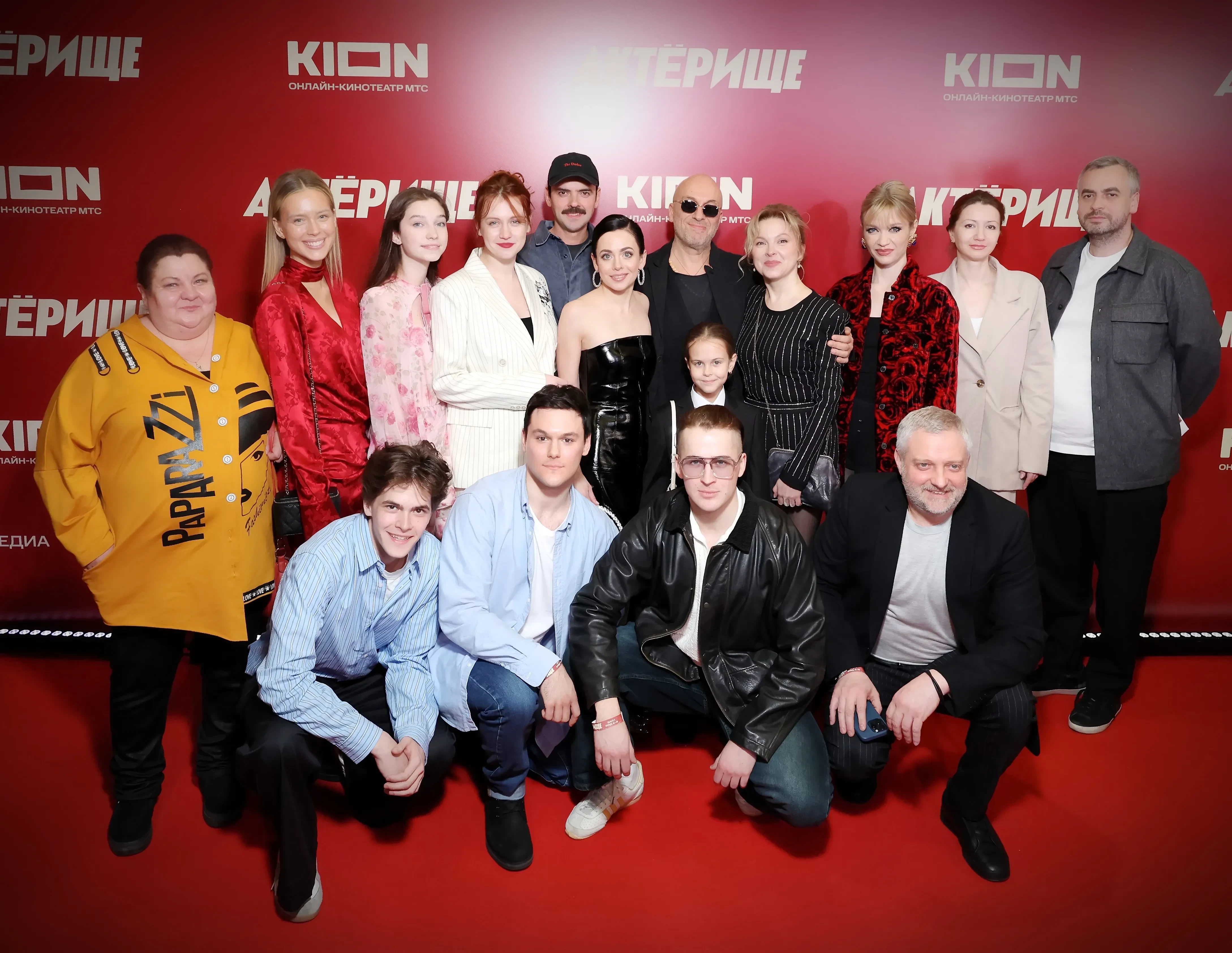 Дмитрий НагиевДмитрий Нагиев и Антон ЛапенкоИрина БезруковаНаталья РудоваМария ЯнковскаяАврора КибаАврора Киба и Татьяна ПалиловаАнтон ЛапенкоЕлена ЗахароваНонна Гришаева с сыном и Алиса ПрохороваНикита Мазепин со спутницейДенис КосяковАнастасия КрайноваАлексей Столяров со спутницейТатьяна Ткачук ("Моя Мишель")Арина и Дина АвериныИлья БурецМихаил КремерКоманда фильма "Актёрище""Актёрище" будет выходить в онлайн-кинотеатре Kion с 1 апреля. В марте текущего года комедию признали лучшим оригинальным сериалом года на фестивале Original+.