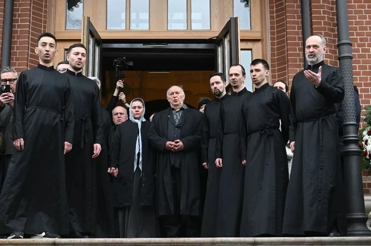Дочь Ларисы Голубкиной на пороге церкви в окружении священников