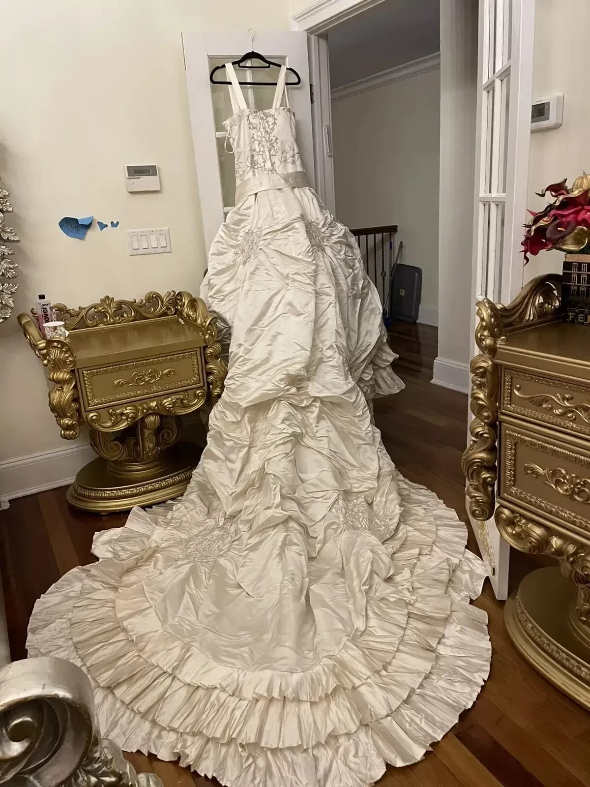 Информация о продаже появилась в блоге Neverworn, который ведёт бывшая сотрудница Vogue Лиана Сатенштейн на Substack. Она рассказала, что её подруга Патрисия Торвальдс обнаружила это платье, когда искала свадебные наряды Dior 80-х годов. В переписке с ней продавец сообщил, что приобрёл его у Мелании Трамп в 2010 году за 70 000 долларов через общего знакомого. Он также признался, что внёс некоторые изменения в оригинальный дизайн: добавил новый слой атласа, вышивку, дополнительную ткань на спине и бретельки. Примечательно, что в настоящее время платье находится в корзине одного покупателя и доступно для покупки.