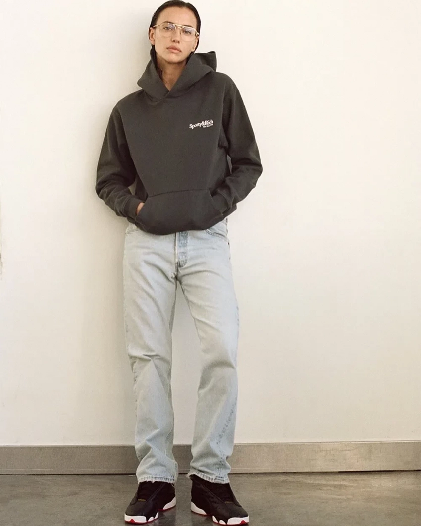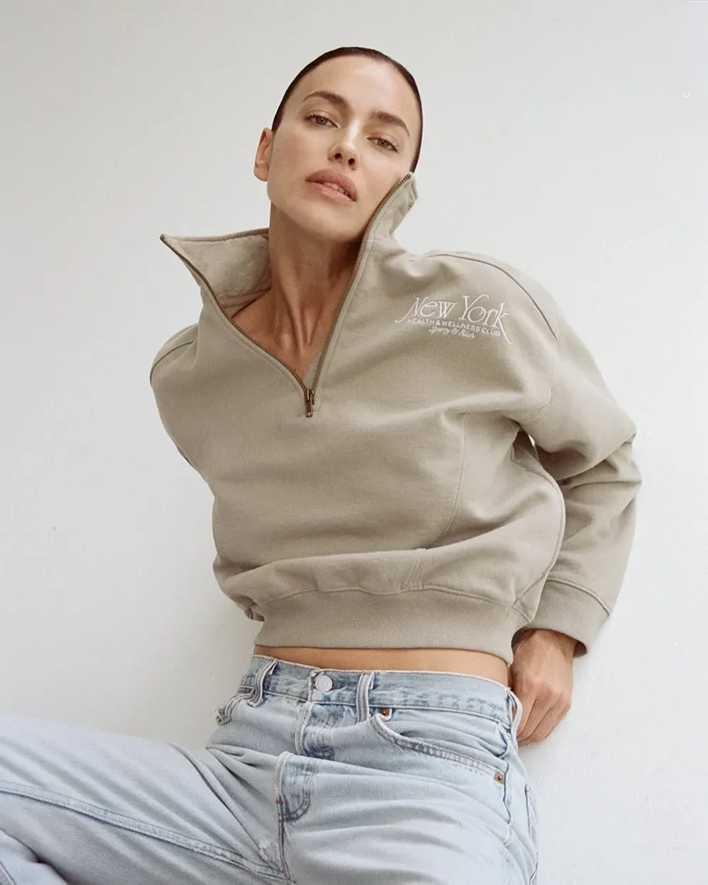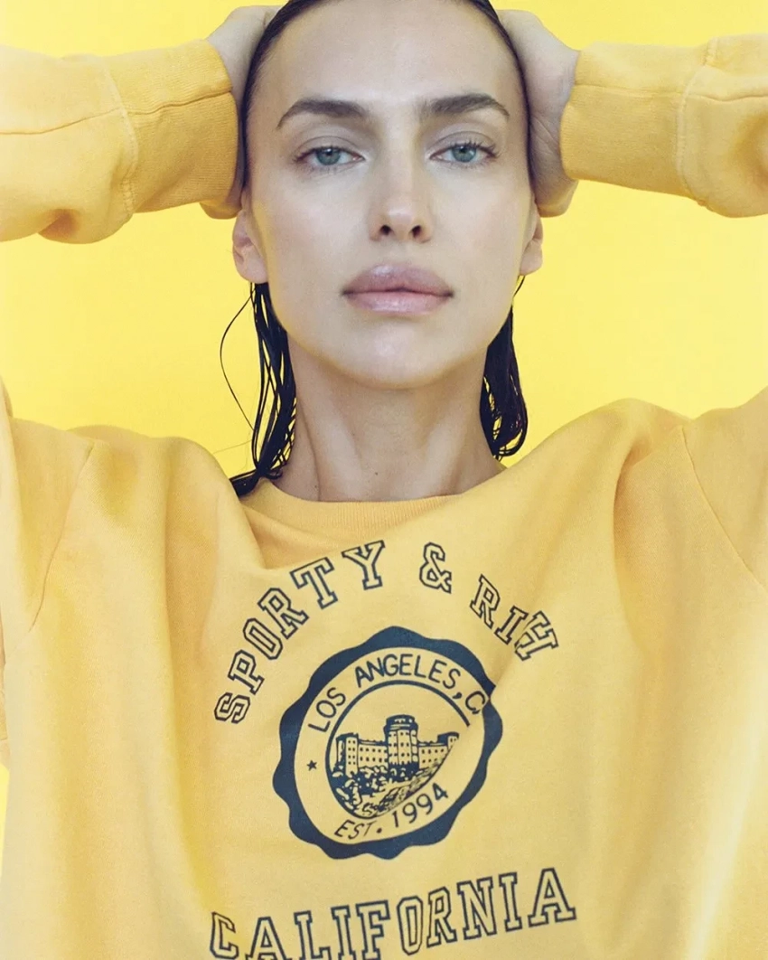 Ирина Шейк для Sporty&RichSporty & Rich родился в 2014 году из инстаграм*-аккаунта Эмили Оберг, посвященного спортивному стилю, винтажным автомобилям и эстетике прошлого века. Изначально это было хобби, выражающее личный стиль Оберг, но со временем переросло в полноценный бренд одежды. Бренд стремится к экологичности, сажая дерево за каждый заказ и сотрудничая с экологическими организациями для компенсации вреда от производства.