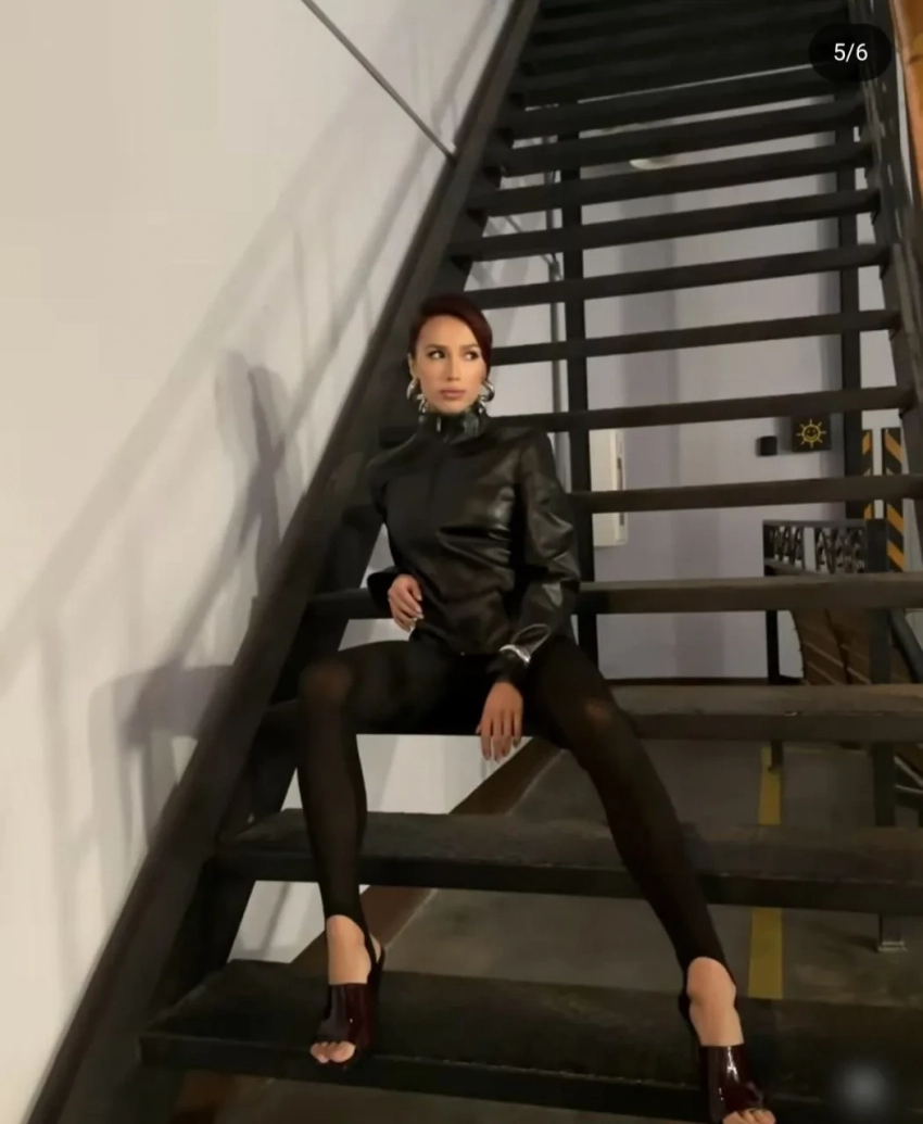 На фото Загитова предстала в кожаной куртке и полупрозрачных леггинсах с убранными в длинный хвост волосами. Она также выложила кадр с бэкстейджа, на котором сидит вместе с сумкой Hermes.