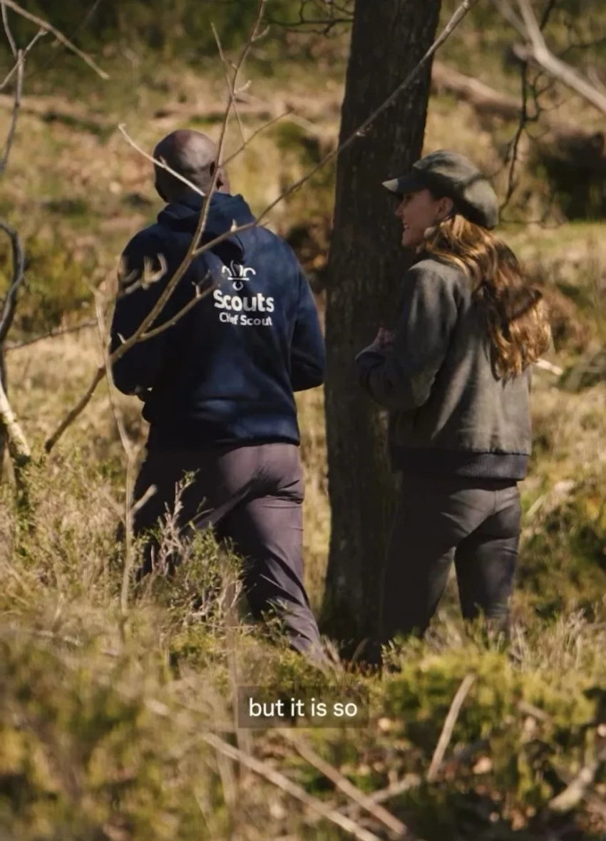 43-летняя Миддлтон, которая является сопрезидентом Ассоциации скаутов, гуляла по густому лесу, общалась с детьми и рассматривала с ними карту местности. Для похода принцесса выбрала кепку-восьмиклинку, вязаный свитер, поверх которого она надела бомбер, и обтягивающие брюки. В видео Кейт говорит, что время на природе даёт ей "чувство покоя". "Возможно, не у всех одинаковые отношения с природой, но для меня это очень значимое место, где можно обрести равновесие и чувство покоя в суетливом мире", — отметила она.