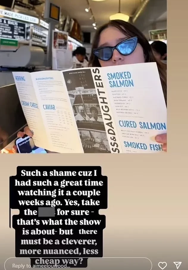 Сторис Эйми Лу ВудНа следующий день после публикаций в сети появились фотографии, на которых Вуд засняли в слезах во время прогулки в Южном Лондоне. Актриса находилась в компании коллеги Ральфа Дэвиса, с которым работает над новым проектом BBC. Снимки вызвали волну обсуждений в соцсетях — пользователи предположили, что причиной её расстройства стала жёсткая пародия. Многие выразили Эйми слова поддержки, в том числе известные личности, такие как Кара Делевинь и Джорджия Мэй Джаггер.