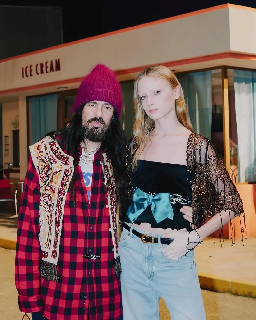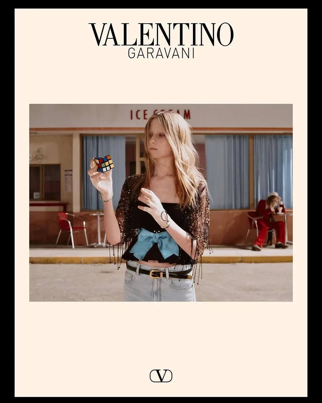 Младший сын Наоми Уоттс, который недавно дебютировал на подиуме Valentino, снялся в рекламной кампании бренда. Для съёмки 16-летний Кай надел чёрный топ с баской, прозрачными рукавами и синим бантом на талии, светлые джинсы, прозрачные перчатки и чёрные туфли на каблуках. В своём инстаграме* он также опубликовал кадры с бэкстейджа, на одном из которых позирует с креативным директором бренда Алессандро Микеле.