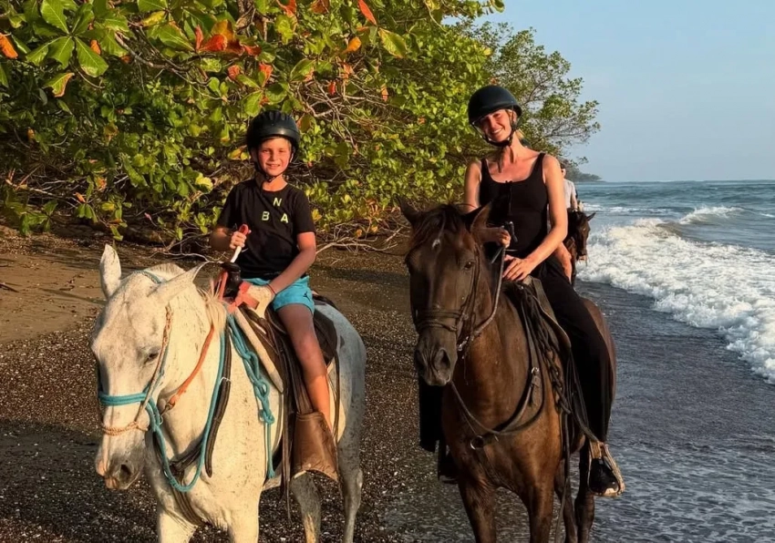 "Счастье — провести пасхальную неделю в окружении красот Коста-Рики. Время замедлилось. Мы катались на лошадях под золотым небом, протискивались через джунгли, прыгали в прохладные водопады и читали книги до тех пор, пока солнце не скрывалось за горизонт. Моё сердце наполнено благодарностью за эти моменты", — подписала Трамп отпускные фото.