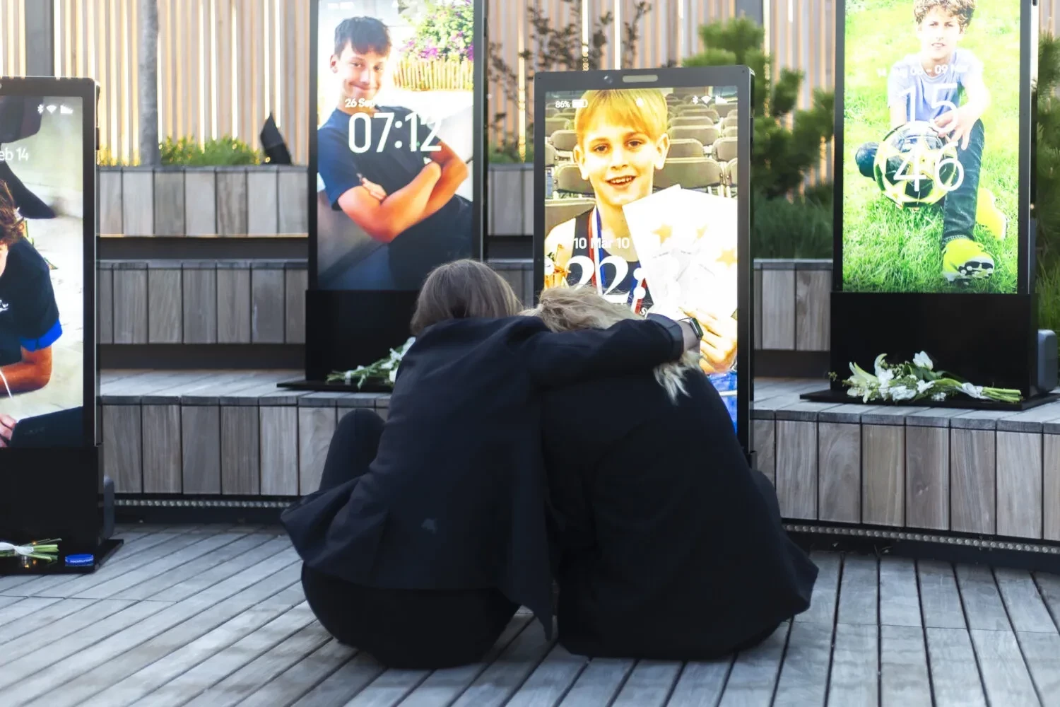 Принц Гарри на открытии мемориала Lost Screen Мемориал Lost Screen ("Потерянный экран") состоит из 50-ти больших экранов, стилизованных под смартфоны, на каждый из которых выведена фотография одного из детей, погибшего в результате онлайн-буллинга. Изображения предоставлены родителями, состоящими в благотворительном фонде пары, с целью "почтить память и привлечь внимание к острой необходимости в более безопасных онлайн-пространствах". В дополнение к этому была создана виртуальная версия мемориала, которая будет включать дополнительную информацию о каждом ребёнке.