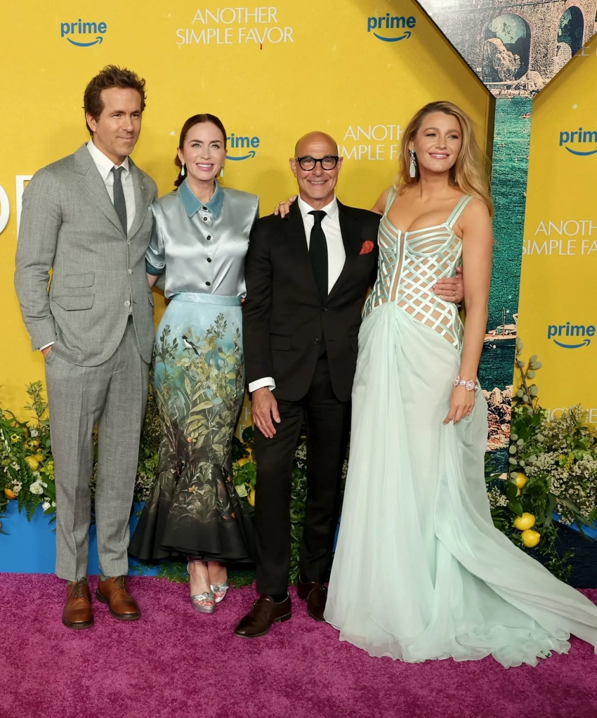 В Нью-Йорке прошла премьера фильма "Ещё одна простая просьба" сиквела ленты "Простая просьба" Пола Фига. Картину представили исполнительницы главных ролей, 37-летняя Блейк Лайвли в мятном платье с корсетом в сетку Tamara Ralph и 39-летняя Анна Кендрик. Вместе со звездой "Сплетницы", появление которой на недавнем гала-вечере Time 100 публично раскритиковали, на дорожке позировал её 48-летний супруг Райан Рейнольдс, а также друзья Эмили Блант и Стэнли Туччи.