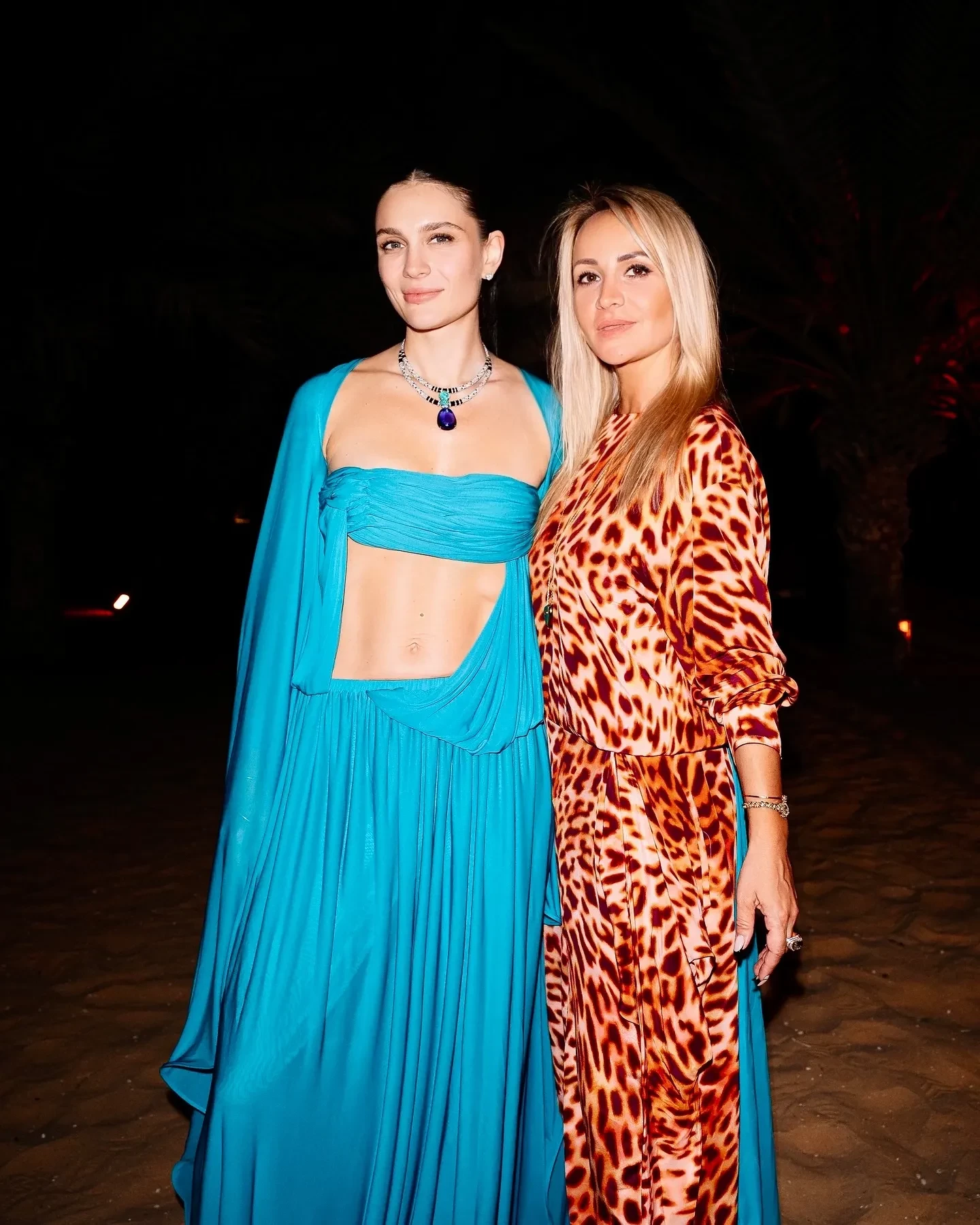 Тимур Сардаров и Екатерина ДармаДля торжества Дарма выбрала наряд в восточном стиле, отсылающий к принцессе Жасмин: она надела голубое струящееся платье-макси с накидными рукавами от Christopher Esber, дополнив образ колье Cartier и минималистичными серьгами. Волосы Екатерина собрала в гладкий хвост, а в макияже сделала акцент на естественную красоту.