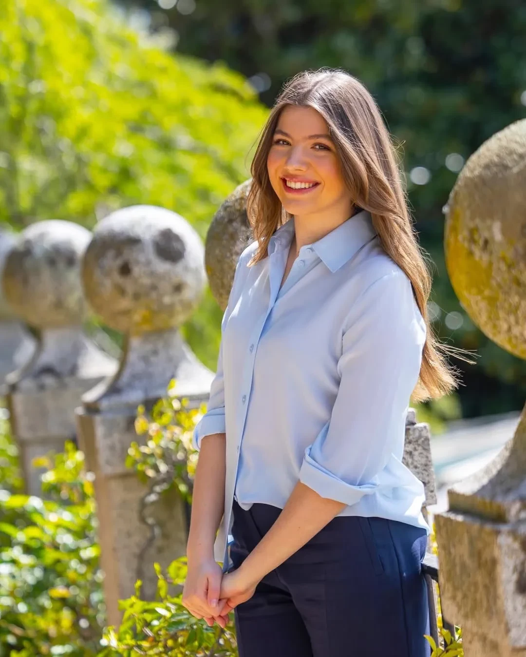 Сегодня младшей дочери короля Испании Филиппа VI и королевы Летиции, инфанте Софии, исполняется 18 лет. В честь этого в аккаунте дворца в соцсетях появились новые портреты именинницы. На снимках инфанта София позирует в голубой рубашке, синих брюках с распущенными волосами и улыбкой на лице.
