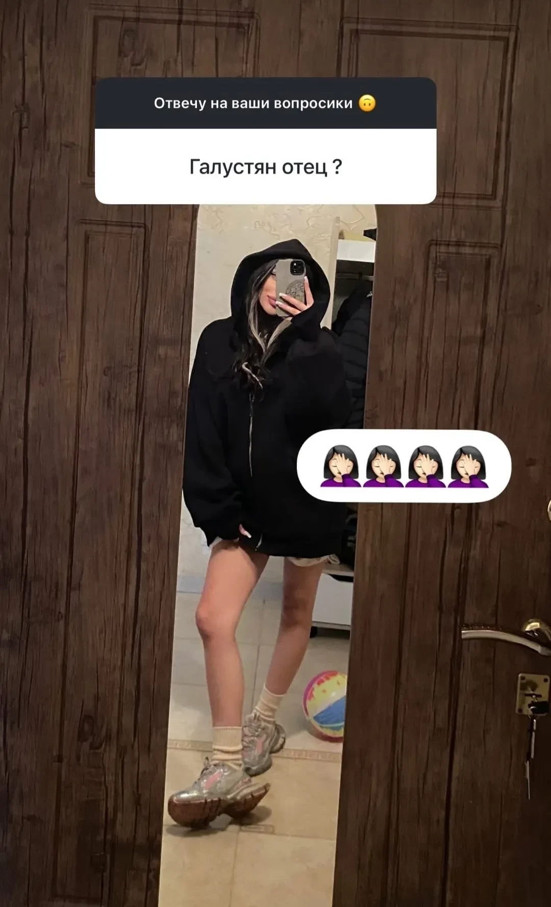 Скриншот инстаграма* МиленыТакже она ответила на вопросы подписчиков. Визажистка рассказала, что у нее будет мальчик смешанных кровей. На вопрос о том, является ли все-таки Галустян отцом ребенка, она отреагировала лишь эмодзи в виде жеста, известного как фейспалм (рука, закрывающая лицо).