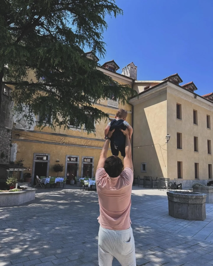 Милош БиковичЕго жена также выложила несколько снимков из путешествия. На одном из них сын тянется рукой в горшок с деревом.