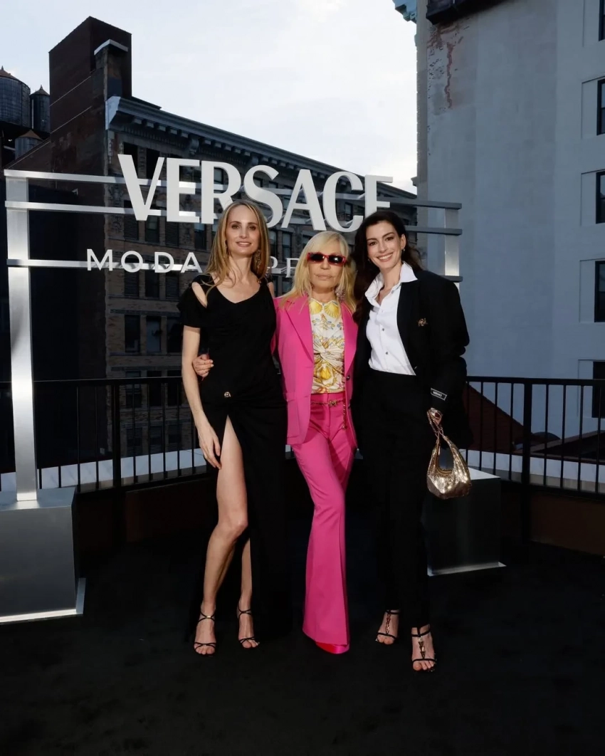 В Нью-Йорке прошла вечеринка в честь запуска новой коллекции Versace La Vacanza. Звёздных гостей встречали бывший креативный директор модного дома Донателла Версаче и Лорен Санто-Доминго, основательница онлайн-платформы Moda Operandi, где будет представлена коллекция. Вечеринку посетили: 42-летняя Энн Хэтэуэй, которую недавно заподозрили в проведении пластической операции, певица Сабрина Карпентер, Ники Хилтон, журналист Дерек Бласберг, актриса Лора Харриер, принцесса Греции и Дании Мария-Олимпия, правнучка нефтяного магната Айви Гетти и другие.