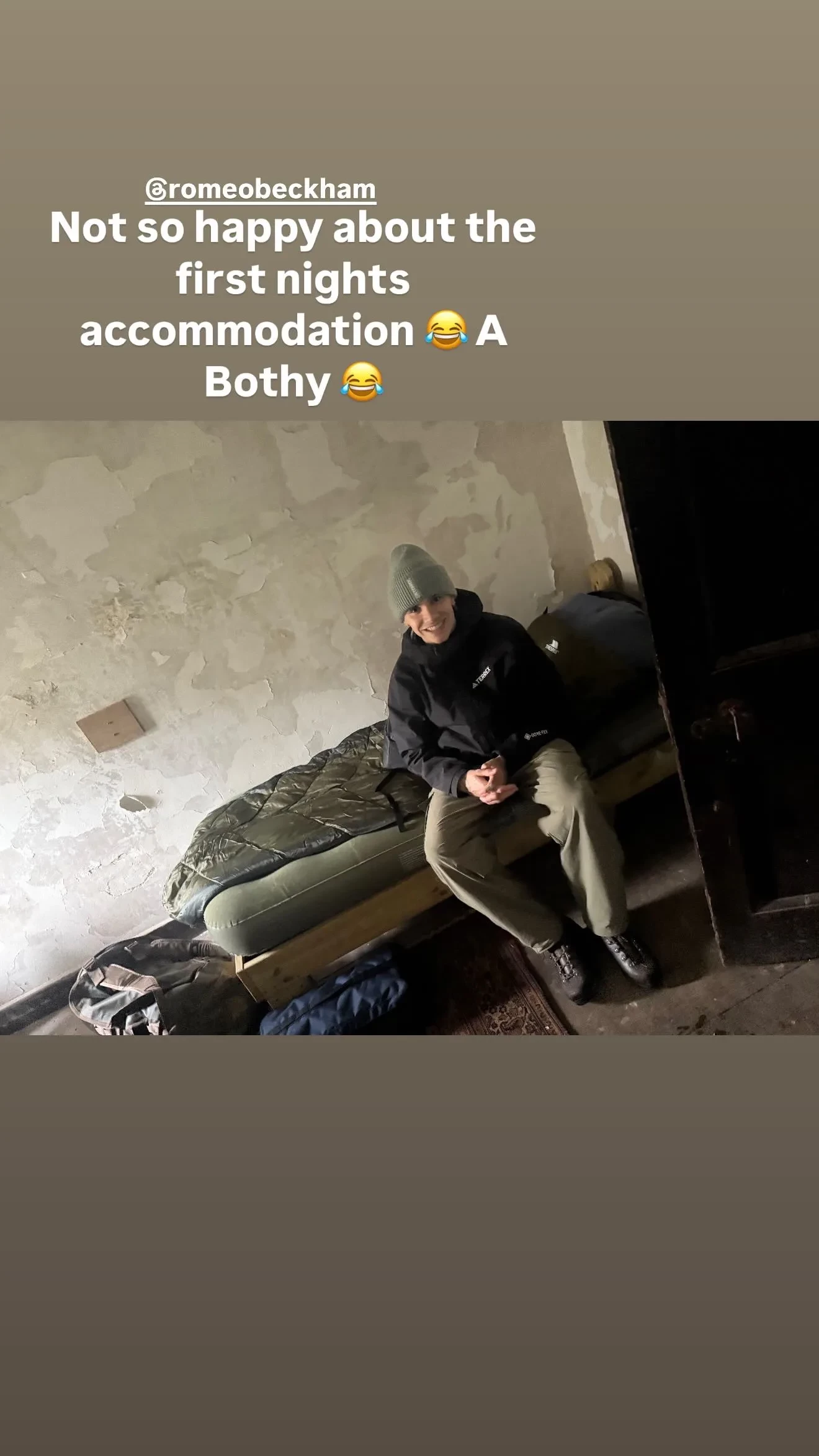 Дэвид Бекхэм, который на днях отметил своё 50-летие, отправился по этому случаю в поход со своими сыновьями Ромео и Крузом. Снимками с семейного "мальчишника", который, по словам спортсмена, был запланирован ещё полгода назад, Дэвид поделился в инстаграме*, рассказав, как проходит поездка.