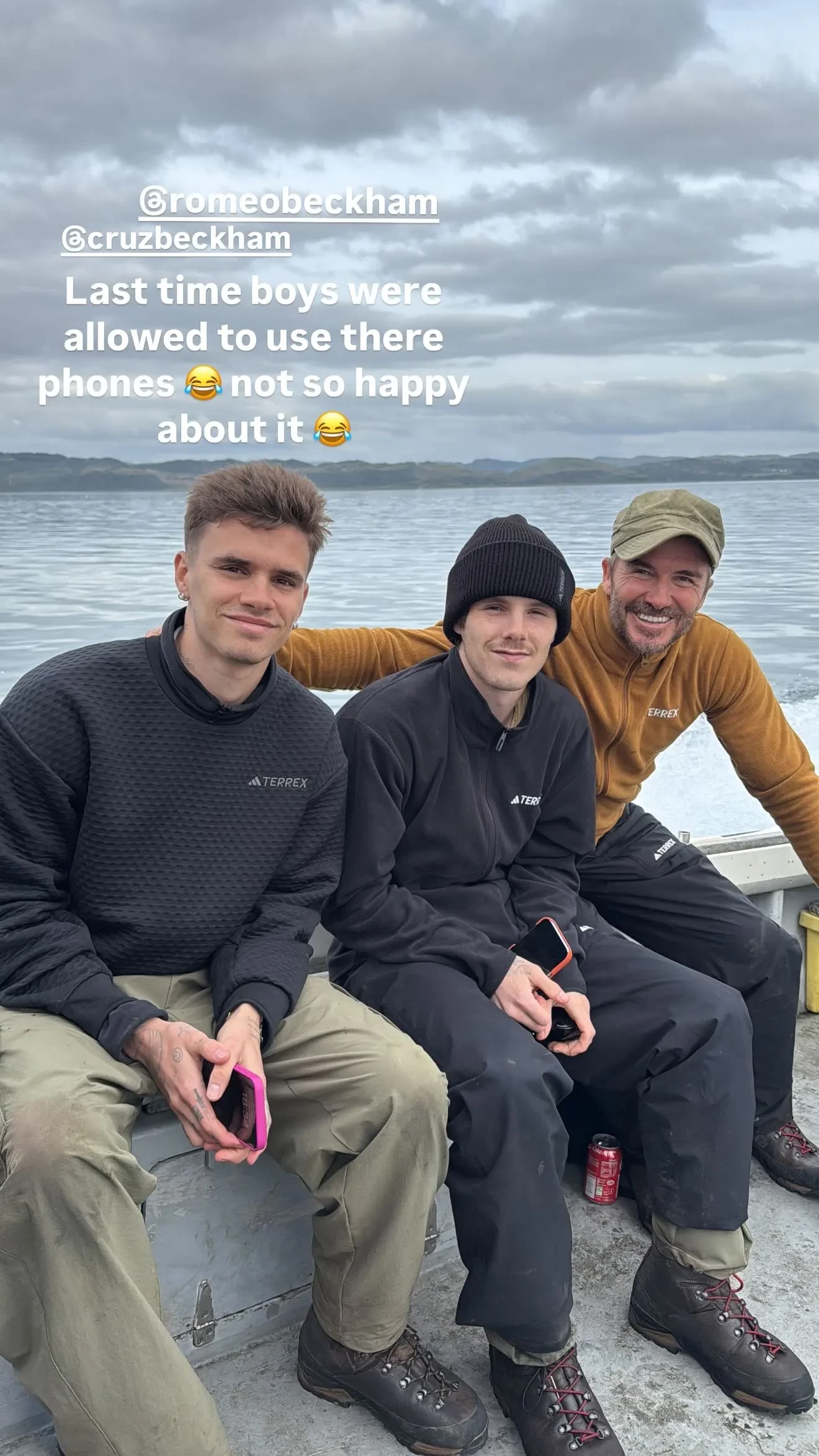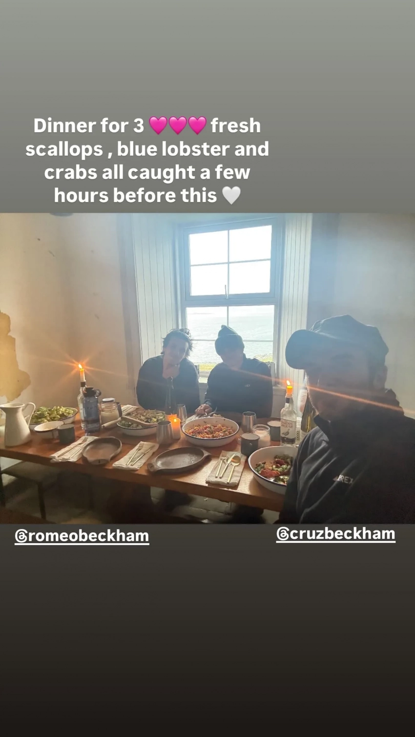 В серии фотографий Бекхэм показал, как они вместе с сыновьями ловили крабов и гребешков, а затем готовили их под открытым небом. Для полного погружения в атмосферу экс-футболист решил остановиться в небольшом прибрежном домике с минималистичным интерьером и пошарпанными стенами, что не вызвало особого энтузиазма у 22-летнего Ромео и 20-летнего Круза. Кроме того, Дэвид сообщил, что запретил сыновьям пользоваться телефонами во время поездки.