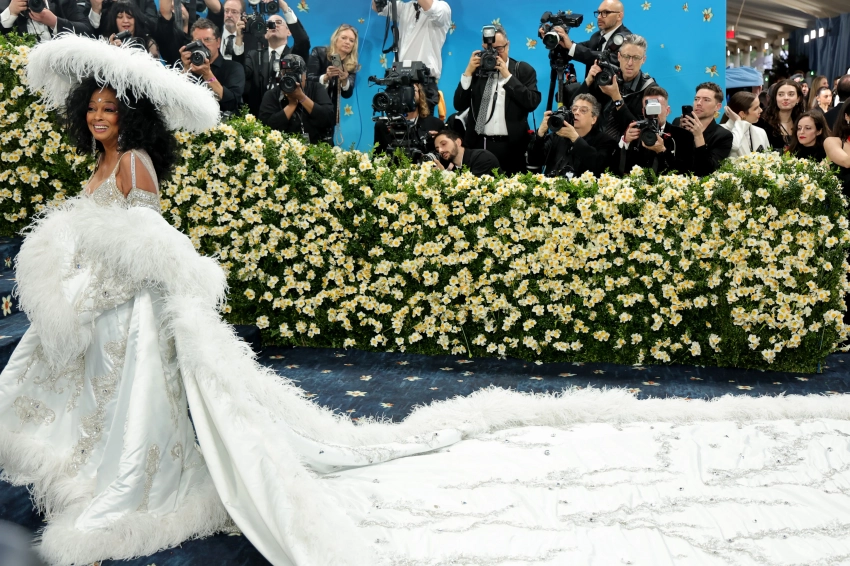 Рианна, которая объявила о третьей беременности перед мероприятием (хотя многие ожидали, что она сделает это на дорожке), показала, что снова готова нести звание самой модной беременной звезды. На бал певица пришла в кастомном наряде Marc Jacobs, а живот не помешал ей надеть корсет с костюмной юбкой с разрезом, дополнив образ шляпой. Вторая фэшн-икона Зендая, которая в прошлом году показала два образа, на этот раз ограничилась белым брючным костюмом Louis Vuitton. На создание этого образа звезду "Дюны" вдохновил фильм Дайаны Росс "Красное дерево" 1975 года. Сама Дайана Росс в этом году тоже пришла на Met Gala — впервые с 2003 года. 81-летняя певица и актриса появилась в "семейном платье", как она его назвала. На шлейфе изделия вышиты имена её пятерых детей и восьми внуков.