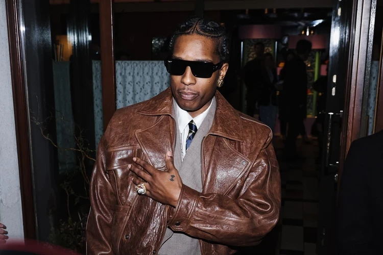 На дорожку вышел и возлюбленный исполнительницы, рэпер ASAP Rocky, одетый в черный костюм и ветровку. Ну и главным акцентом образа музыканта стал наган.