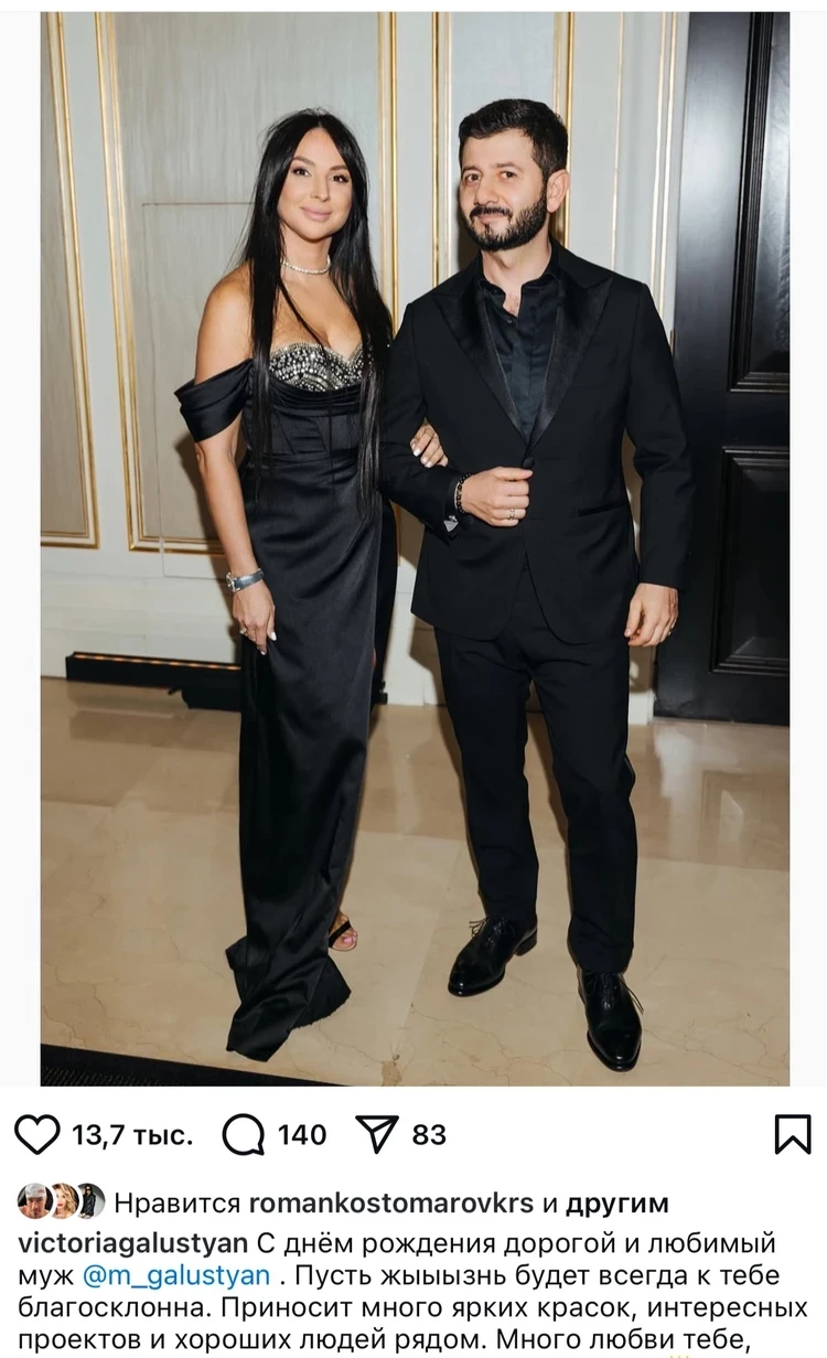 А ведь еще в октябре 2024 года Виктория нежно поздравляла мужа с 45-летием. Поговаривают, что развод произошел не просто так. Причина — в другой женщине. По слухам, у Галустяна случился роман с молодой и симпатичной визажисткой по имени Милена, которая гримировала Михаила на разных шоу. В настоящее время девушка глубоко беременна. При этом, ни одной фотографии с будущим отцом ребенка в соцсетях, которые она ведет активно, нет.