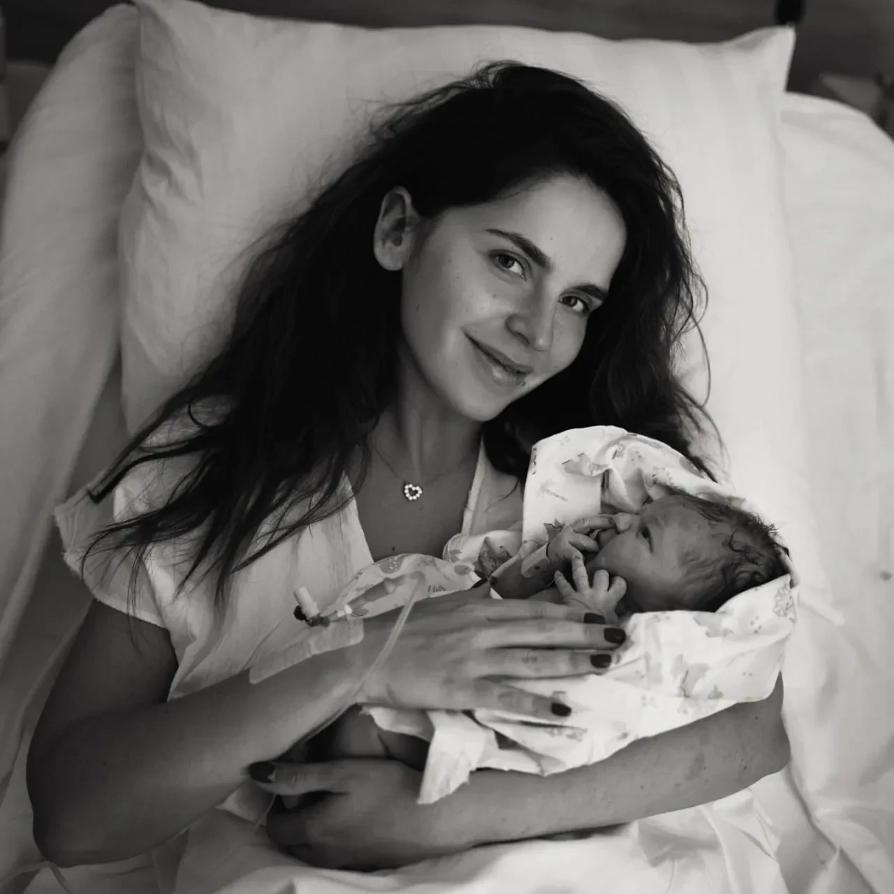 "Её зовут Шарлиз, и она наша дочь! В 7:42 утра 10.05.2025 она стремительно и одновременно спокойно появилась на свет. С момента нашего прибытия в больницу и до появления ребёнка прошло всего полтора часа. Нежное маленькое чудо со светлыми глазами и длинными пальчиками сделало нас ещё счастливее! Мы были вместе, крепко держались за руки, и у нас были настоящие партнёрские роды, хотя мы и не планировали! Обещаем, мой ангел, что мы тебя не подведём. Добро пожаловать в этот мир!" — подписала актриса серию фотографий из роддома, которыми она поделилась с подписчиками.
