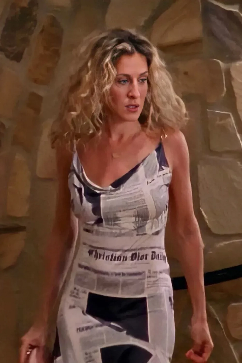 Ортега позировала в винтажном платье авторства Джона Гальяно для Christian Dior из коллекции осень-зима 2000 года. В нём же Сара Джессика Паркер появилась в 17-м эпизоде третьего сезона одного из самых известных сериалов нулевых "Секс в большом городе".