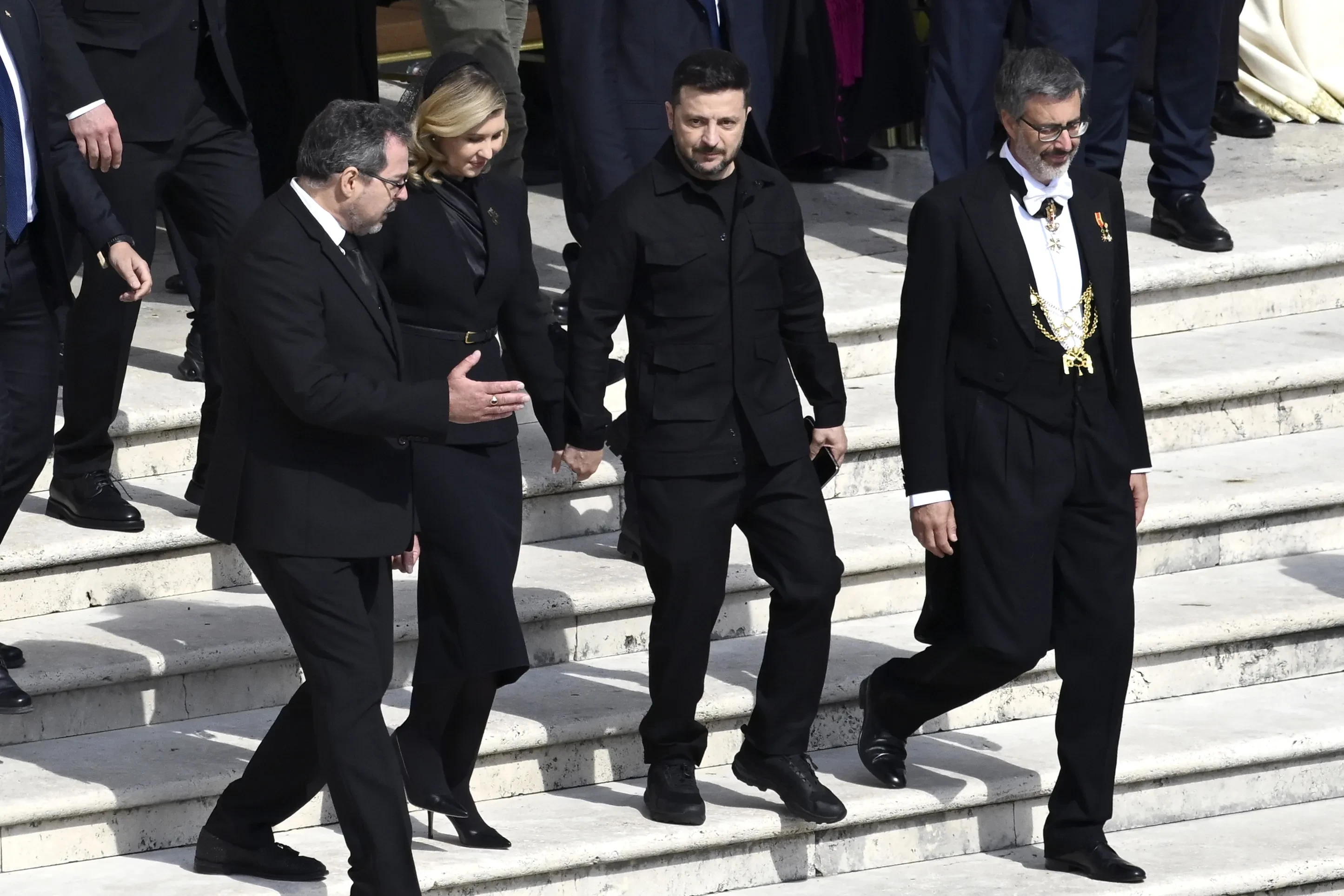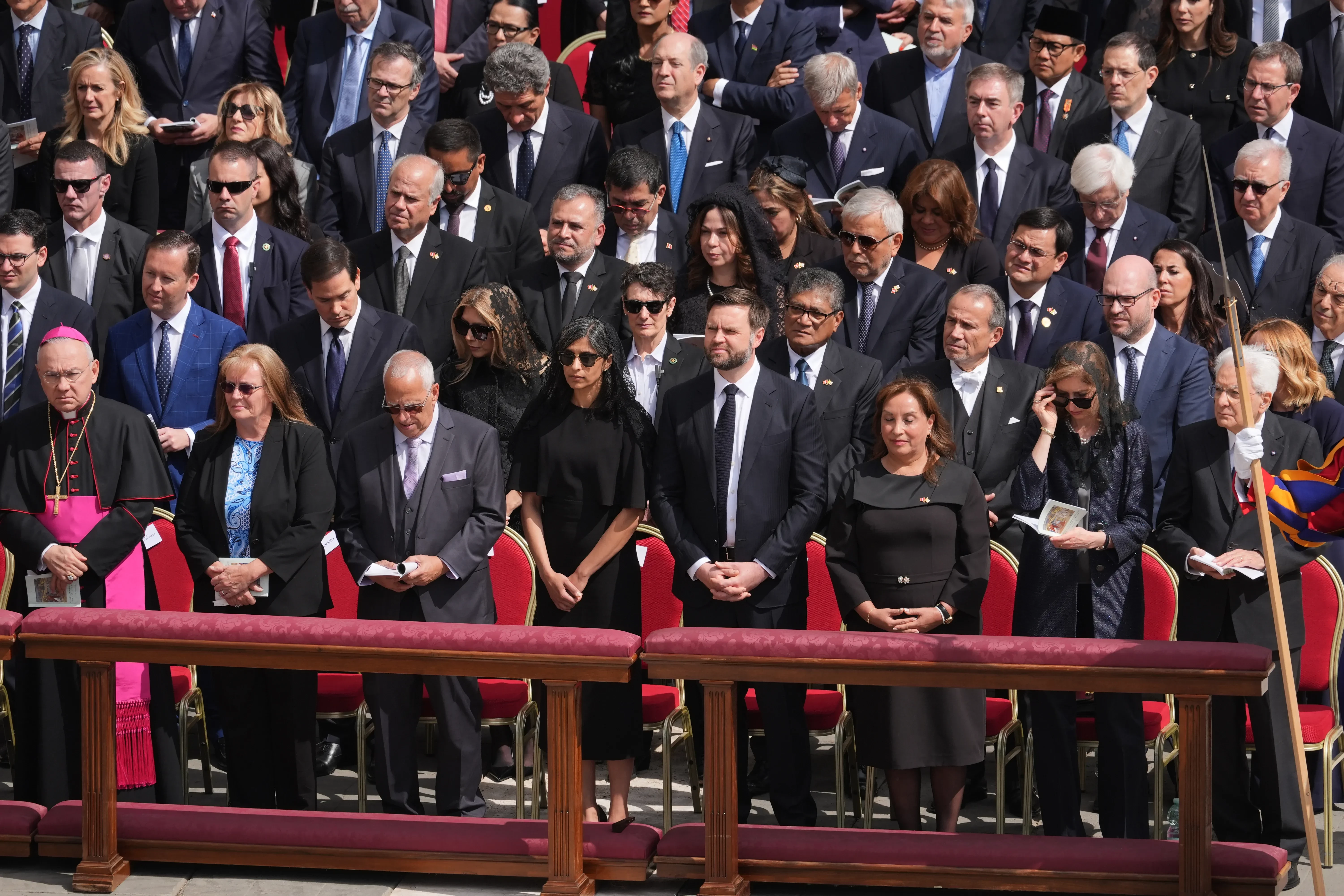 Король и королева Испании Филипп VIи Летиция, король и королева Бельгии Филипп и МатильдаНа снимках с мероприятия можно также увидеть многих политиков: вице-президента США Джей Ди Вэнса с женой Ушей, госсекретаря Марко Рубио, главу Еврокомиссии Урсула фон дер Ляйен, премьер-министра Италии Джорджу Мелони, президента Украины Владимира Зеленского с супругой Еленой и других.