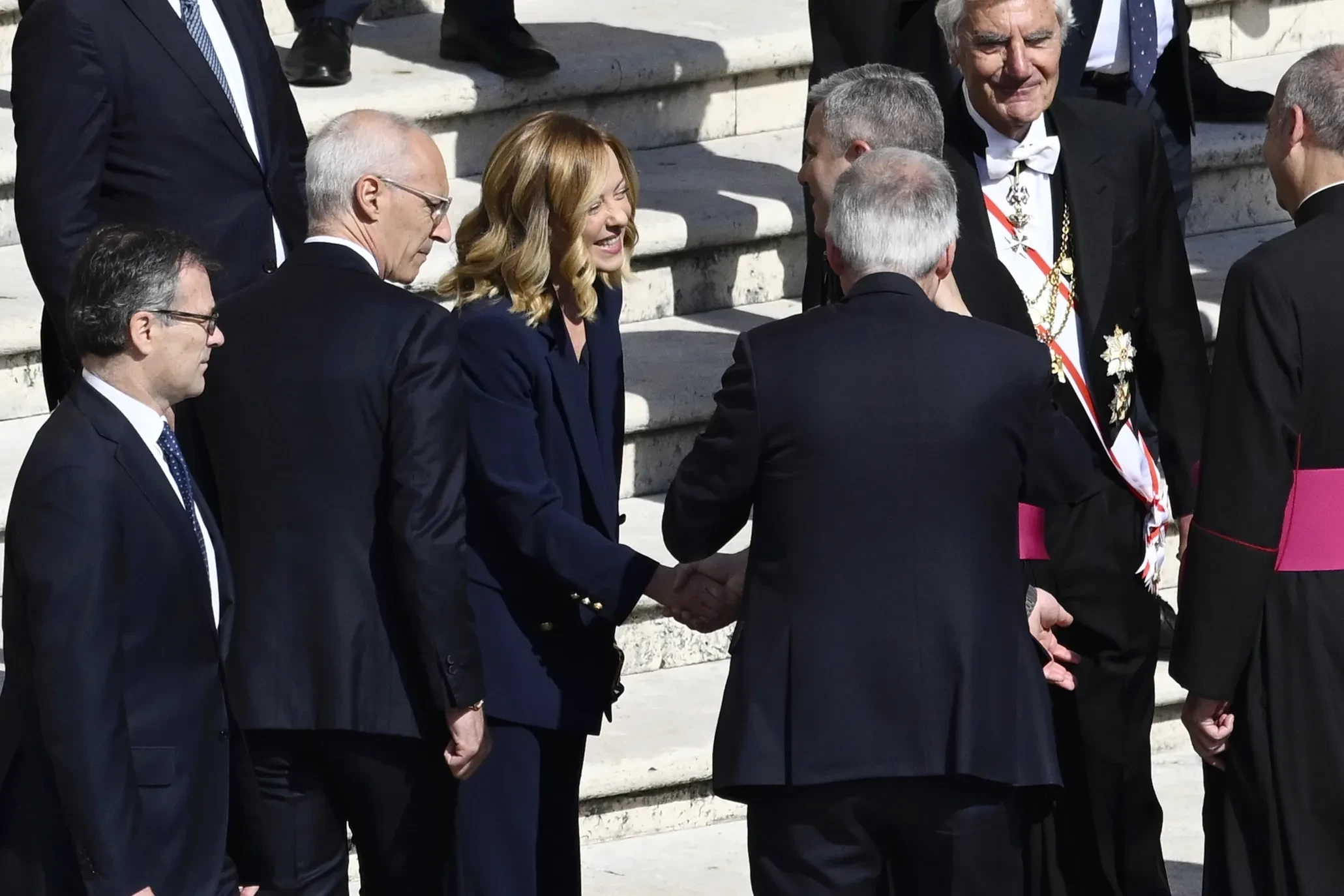 Джорджа МелониПо традиции новому папе Римскому вручат символы власти: шерстяной паллий, наплечную ленту и “перстень Рыбака” из позолоченного серебра с изображением Святого Петра, первого епископа Рима.