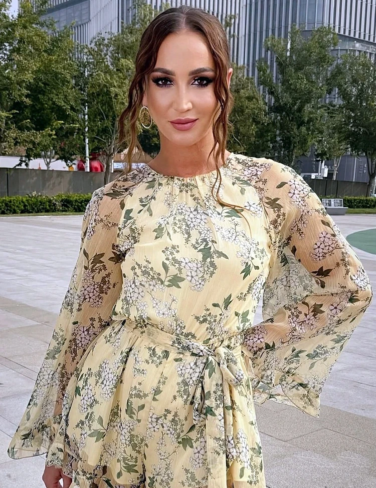 Ольга выгуляла наряд модного сливочного оттенка с принтом в виде сирени. Нежный комбинезон звезда дополнила поясом в тон. Образ ведущая завершила крупными серьгами. Также Бузова сделала романтическую прическу, выпустив пряди у лица. Определенно такие нежные луки Ольге подходят.